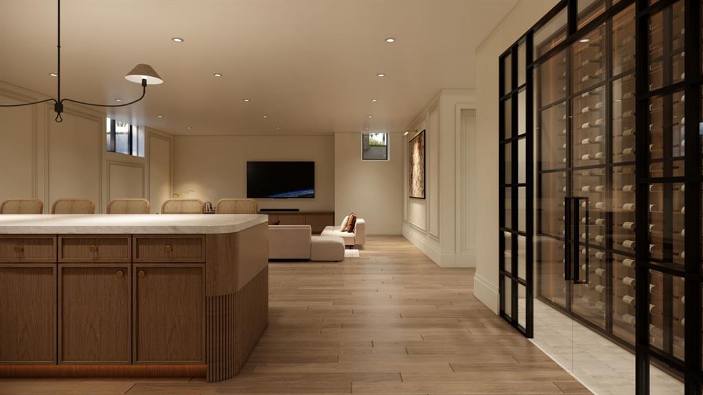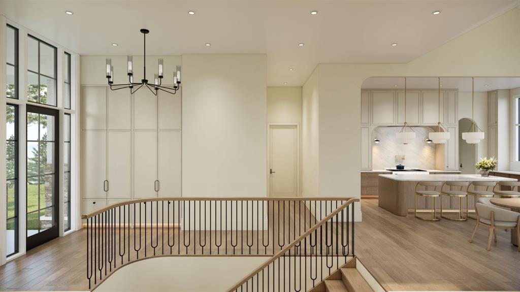 This exceptional custom bungalow located on a quiet corner lot offers over 4,400 square feet of total developed living space with 4 bedrooms, a rare attached triple tandem garage, a west facing backyard, and impressive architectural ceiling heights including 12-foot ceilings throughout the main level, 10-foot ceilings in the basement, and a front office. The home opens through a statement front foyer with designer lighting, wide plank hardwood flooring, and custom millwork detailing that continues throughout the main floor. The front office features elegant wall panelling and built-in cabinetry with glass fronts, while the great room is anchored by a striking fireplace feature wall framed by expansive windows that highlight the 16-foot vaulted ceiling, multiple skylights fill the space with natural light. The chef’s kitchen, equipped with high-end Thermador appliances, is designed as a true centrepiece with custom cabinetry, Taj Mahal quartzite countertops, a large oak island, designer hardware, and elevated plumbing fixtures. The adjacent dining area is positioned beside large windows overlooking the backyard, and heading out to the large deck with a gas fireplace. The main level primary retreat is designed as a luxurious private space with its own dramatic 16-foot vaulted ceiling, oversized windows, and generous proportions. The spa inspired ensuite features a freestanding tub, large walk-in shower with full height tile, dual vanities with custom cabinetry, quartz countertops, in-floor heating, and a spacious walk-in closet with extensive built-ins and a center island. The main floor is further completed by a second primary bedroom and an ensuite, a designer powder room with a fluted vanity and porcelain countertop, a mudroom with custom cabinetry and built-in bench seating, and a fully finished laundry room with cabinetry and quartz counters leading to the attached triple tandem garage. The fully developed lower level continues the home’s refined design with 10-foot ceilings, a gym, a large recreation and entertainment area, a custom wet bar, extensive cabinetry, and a glass enclosed wine display. Two additional bedrooms are generously sized and paired with beautifully finished bathrooms featuring custom vanities, quartz counters, and full tile showers, creating a home that blends thoughtful layout with elevated finishes throughout. Located near the Glenmore Reservoir, North Glenmore Park, and Weaselhead Flats with endless walking and cycling pathways. Enjoy quick access to downtown, top rated schools, nearby golf courses, and a vibrant community atmosphere with parks, recreation, and local amenities just minutes away. Buyers will have the opportunity to work with the builder and customize select finishes. Call today to book your private tour.