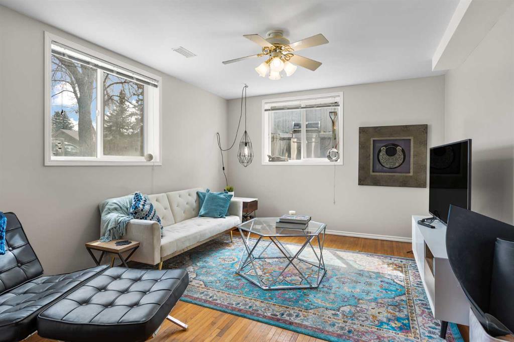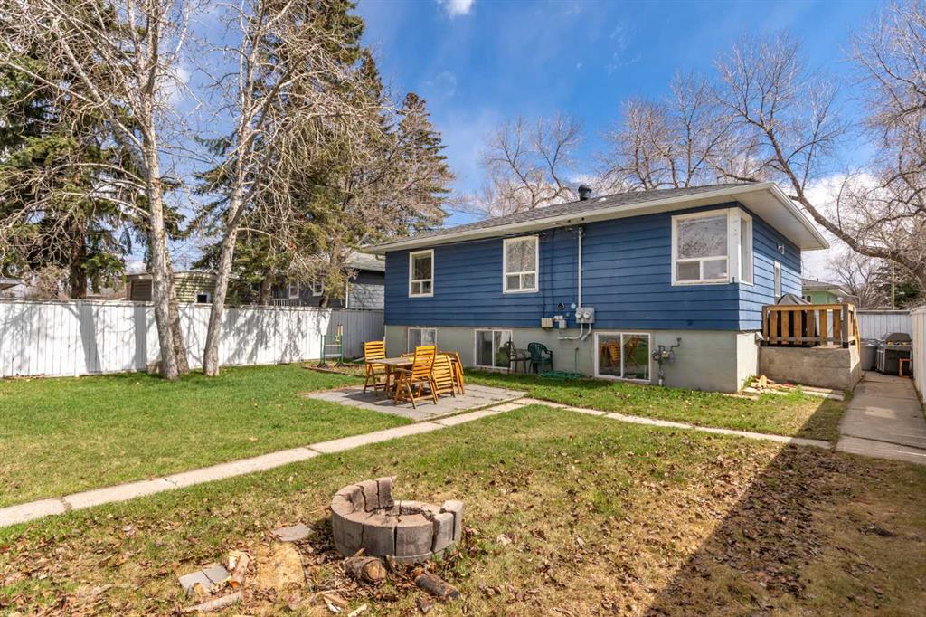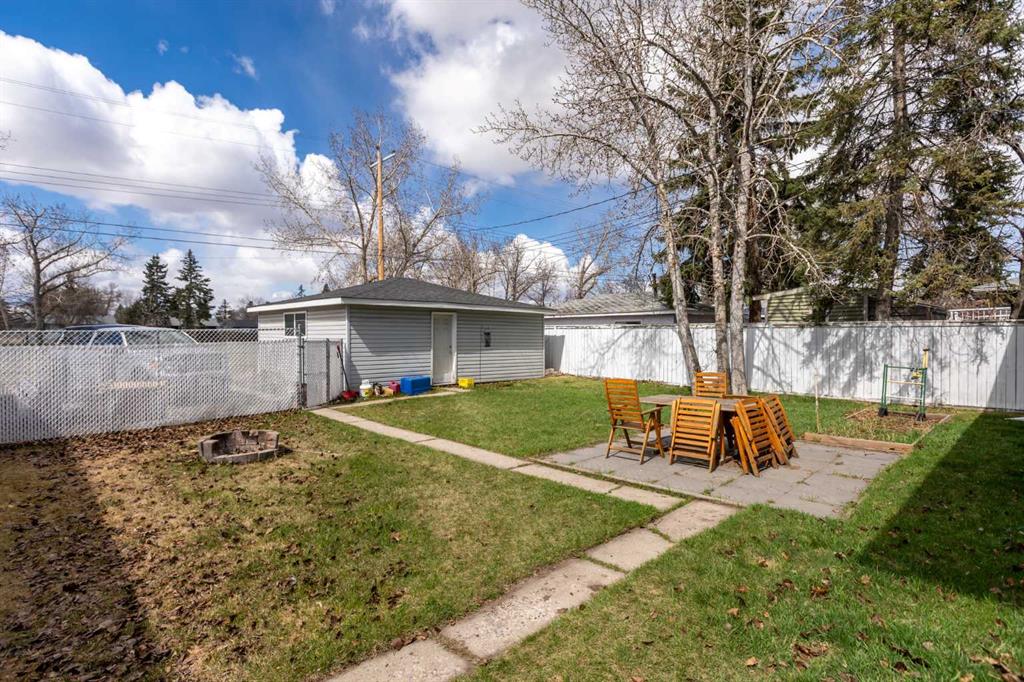 Out back, you have a private yard with mature trees, a patio area, a fire pit, and a DOUBLE DETACHED garage with NEW DOORS. For additional parking, there is a parking pad directly beside the garage. The lot is 50′ x 120′ and zoned RCG, which gives you real future redevelopment potential alongside the immediate income from the suite.