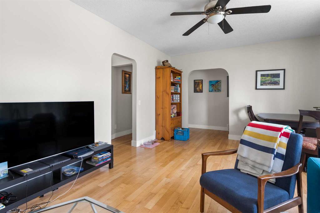 The main floor has THREE bedrooms, a four piece bath, and an open living and dining area with a big front window pulling in tons of natural light. The original hardwood runs throughout, the kitchen has been updated with painted cabinets and also brings in a ton of natural light! This home actually has a proper foyer with closet space at the front entry!