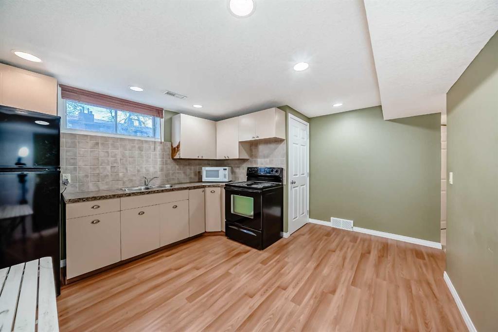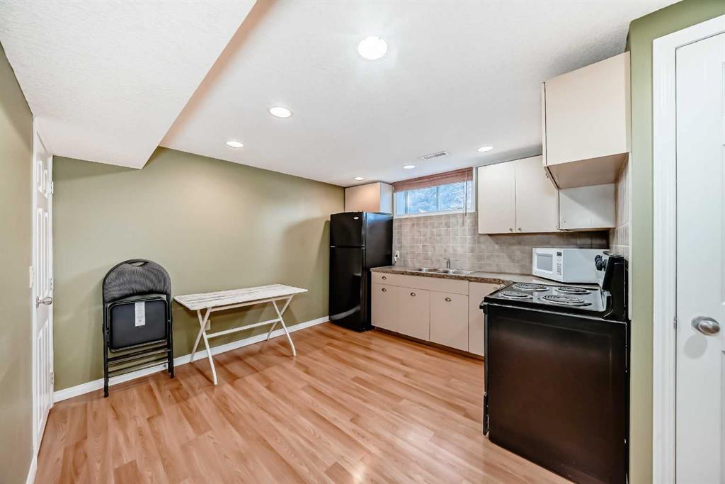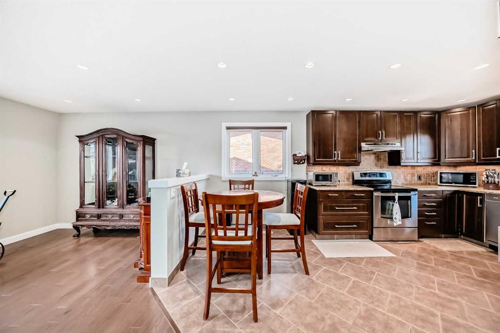 Beautifully maintained and renovated home in the sought-after community of Lakeview, featuring a separate entrance suite (illegal). This turnkey property is in excellent condition, ideal for those seeking a mortgage helper or a solid investment opportunity in a prime location. The main level offers three bedrooms, including a primary suite with a two-piece ensuite, a full bathroom, an updated kitchen with granite countertops, and convenient in-suite laundry. The lower level, with its own private entrance, includes a full kitchen, one bedroom, a full bathroom, a den, and separate laundry facilities. Situated on an oversized Lakeview lot, the property provides ample rear parking and a large 22×24 detached garage that is insulated, drywalled, equipped with a gas line for a potential heater, and has sufficient power for workshop use. The sunny west-facing backyard spans across the 60×110 ft lot and also includes a gas line for outdoor entertaining or a future project. Recent updates include top-of-the-line roof shingles (2022), a new garage door opener (2023), a hot water tank (2024), and upgraded windows and siding with added insulation (2008). Additional features include central air conditioning and a built-in Vacuflo system, making this home move-in ready and exceptionally well-appointed.