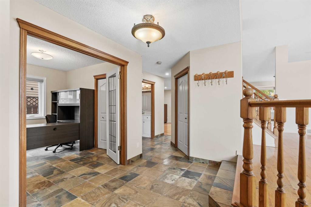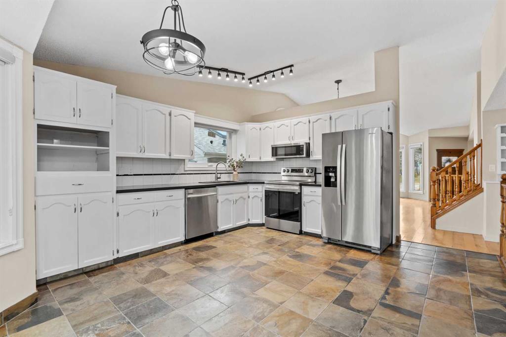 Welcome home to the beautiful NW community of Macewan. This charming former showhome boasts everything you could wish for, starting with its impeccable curb appeal to a complete transformation. With all of the updates complete, simply move-in and enjoy. New windows and trim (2023), new roof and gutters (2023), new plumbing and all poly b removed (2023), stainless steel appliances, kitchen renovation (2025), bathroom vanities (2025), new carpet (2023), blackout blinds, deck and firepit, storage shed. Ideally situated on a spacious 40-foot wide lot and walking distance to two schools, Simons Valley and Monsignor Neville. As you step inside, you are welcomed by vaulted ceilings and soaring windows creating a bright and open feel. The kitchen has been nicely updated with stainless steel appliances, stone countertops and a new sink. The sunken living room is a cozy retreat, framed by a brick surround wood-burning fireplace, inviting you to relax and unwind in style. The main floor is complete with a home office, spacious bathroom, laundry and an oversized, heated garage with a new overhead door. Heading upstairs, you will find a spacious primary retreat with a walk-in closet and updated ensuite bathroom. Two additional generously sized bedrooms upstairs provide ample space for family members or guests, conveniently sharing a nearby updated main bathroom. The fully finished lower level provides a wonderful area for kids to play or to set up a home theatre/games area. Set with a fourth bedroom and full bathroom, this basement is the perfect set-up. Step outside into the welcoming backyard, where mature trees, a spacious deck and corner firepit area offer a dreamy outdoor space to relax in. Living in Macewan offers an unparalleled lifestyle, with proximity to Nose Hill Park offering endless opportunities for outdoor enthusiasts, including hiking, biking, and running trails. Top-notch schools, playgrounds, and parks are all within the community and walking distance, catering to families of all ages. With a quick 15-minute drive to downtown and easy access to the airport and the mountains, convenience meets comfort in this exceptional home. Welcome home to Macewan perfection!