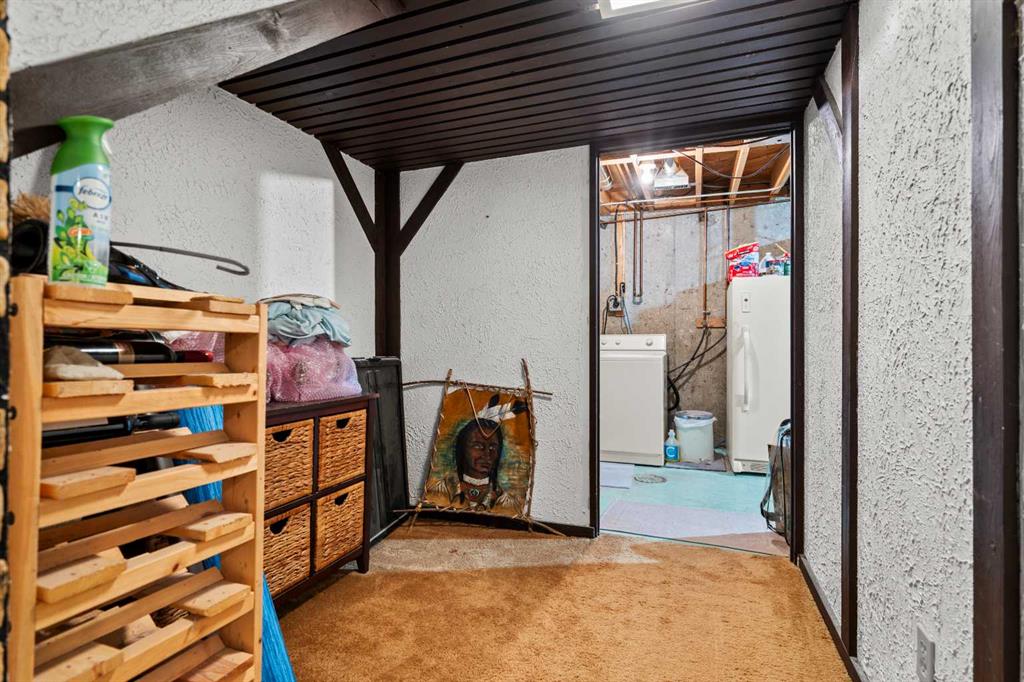 The main level is completed by a convenient half bath, while upstairs offers three generous bedrooms and a full 4-piece bathroom, perfect for families, first-time buyers, or anyone seeking extra space. The finished basement with wood burning fireplace provides a large recreation area, laundry space, and additional storage options.