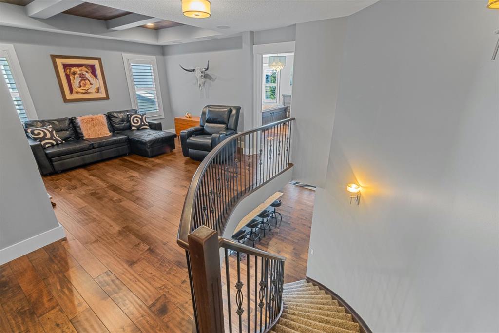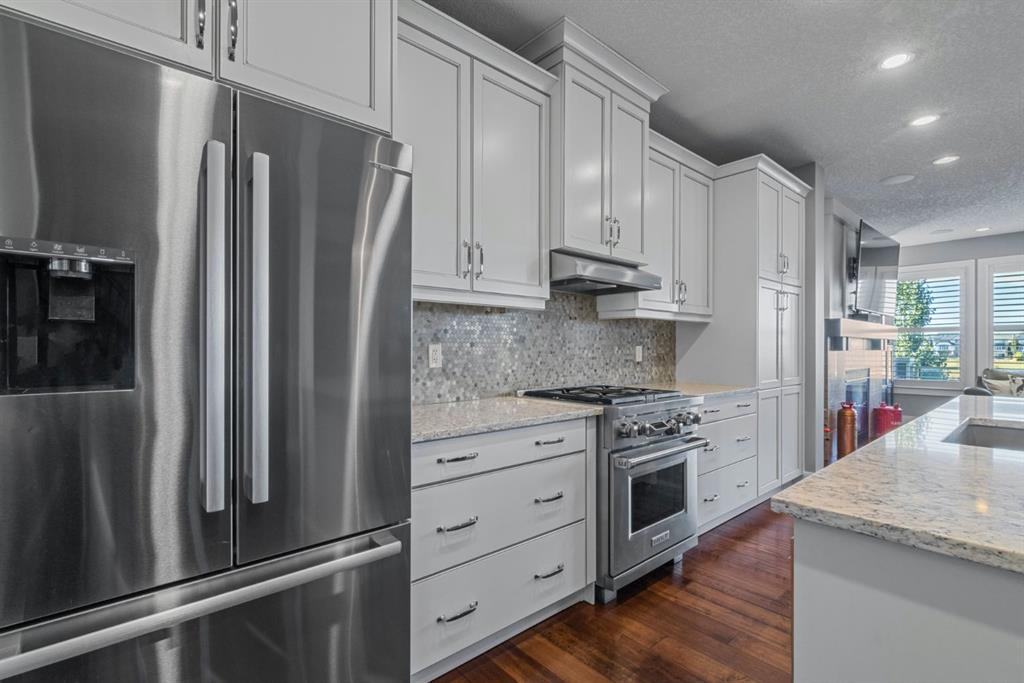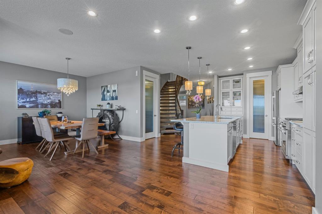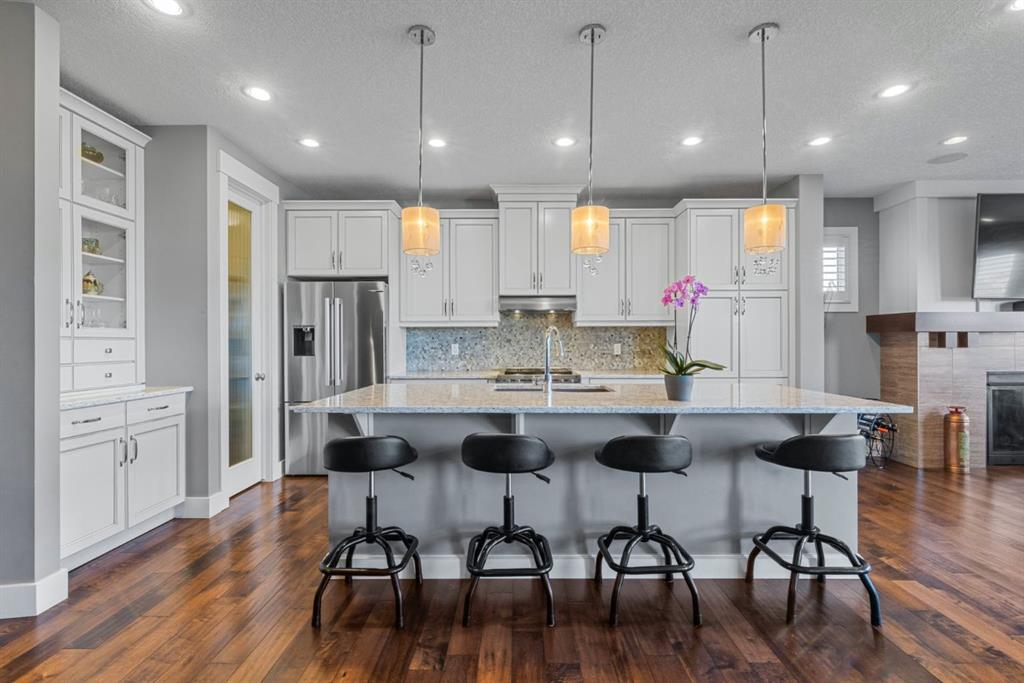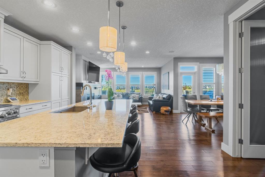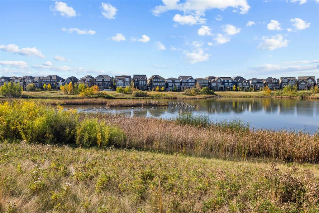 Wake up to breathtaking wetlands views every morning in this stunning 5 Bedroom 2 Storey Walk-Out home in Mahogany. With direct access to the pathways and serene natural surroundings, this home feels like your own private retreat, where trails for walking, biking, and exploring start right in your backyard. Step inside and prepare to be wowed by the open curved staircase, a showpiece that sets the stage for the elegance and warmth found throughout the home. The main floor was designed for both beauty and everyday function. The kitchen is a dream for anyone who loves to cook or gather, with high end appliances, quartz countertops, built-in storage, and a spacious walk-through pantry. The dining area opens onto the upper deck for easy indoor-outdoor living, while the family room with its cozy fireplace makes the perfect spot to wind down together. A dedicated den or office adds flexibility for working from home, studying, or simply keeping life organized. A full wall of windows floods the home with natural light and spectacular views. The mudroom is thoughtfully designed with built-in lockers and shelving, making it ideal for organizing everyone’s gear and everyday essentials, helping keep the home clutter-free. Upstairs is where this home truly shines for family living. On one side, the primary suite offers a peaceful retreat with a spa-inspired ensuite and direct access to the central laundry room. On the other, three spacious bedrooms are anchored by a central bonus room with beautiful coffered ceilings, the perfect hub for movie nights, games, or homework. This split design gives everyone their own space while still keeping family at the heart of it all. The walkout basement is built for entertaining and also features the 5th bedroom with a full bath. There is a media space with feature stone wall, a built-in study nook, and a large open family area. Outside, the yard feels like an extension of the natural landscape with a firepit for late-night chats, low-maintenance landscaping, and direct access to the pathway system. The upper deck provides the perfect spot to relax and enjoy the wetlands views. Every detail has been carefully thought out, from the gorgeous hardwood floors on both the main and upper levels, to the heated garage with custom storage, built-in closet organizers, a 75-gallon hot water tank (2023), a home sound system, air conditioning, underground sprinklers, and more. Nestled in Calgary’s beloved lake community, this home offers year-round lake activities, from swimming and paddleboarding in summer to skating and bonfires in winter, with schools, shopping, and dining all nearby. This is a home designed for real life, where family memories are made, where weekends bring lake adventures, and evenings end gathered by the fire with the with wetlands as your backdrop.