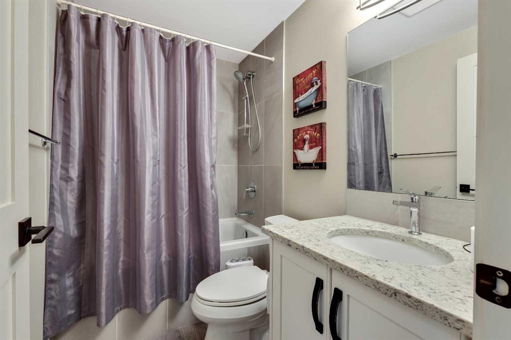 Upstairs, there are four bedrooms, three full bathrooms, and a vaulted bonus room. The luxurious primary suite includes a fireplace, a spa-inspired ensuite with under-floor heating, a steam shower, and dual vanities.