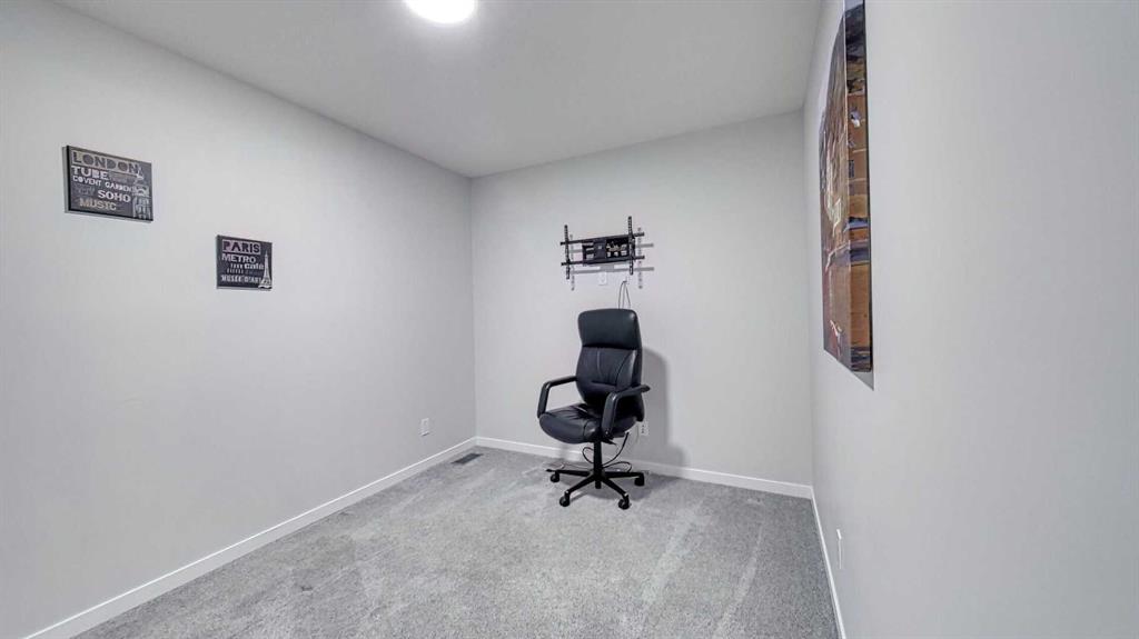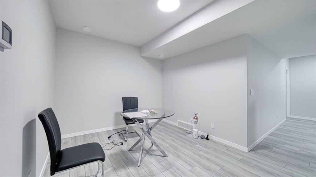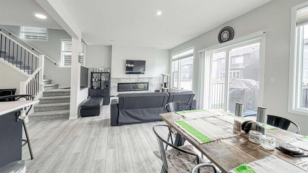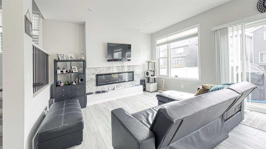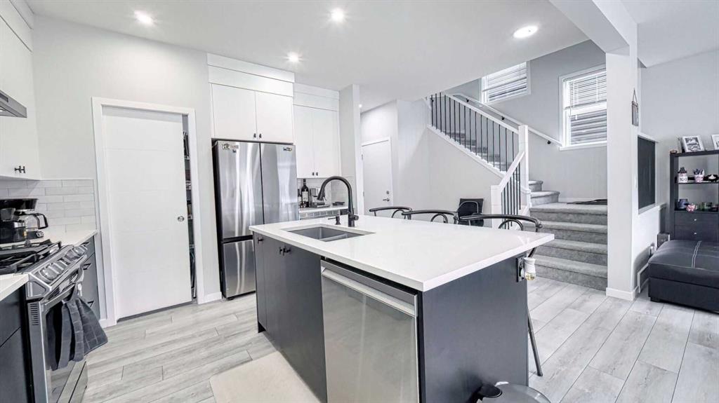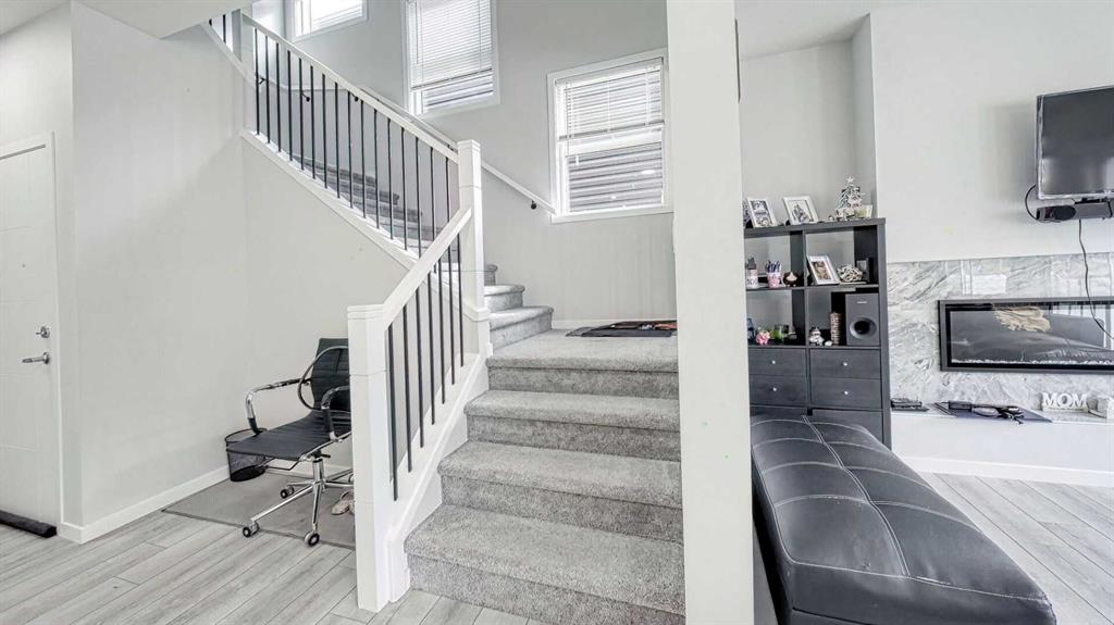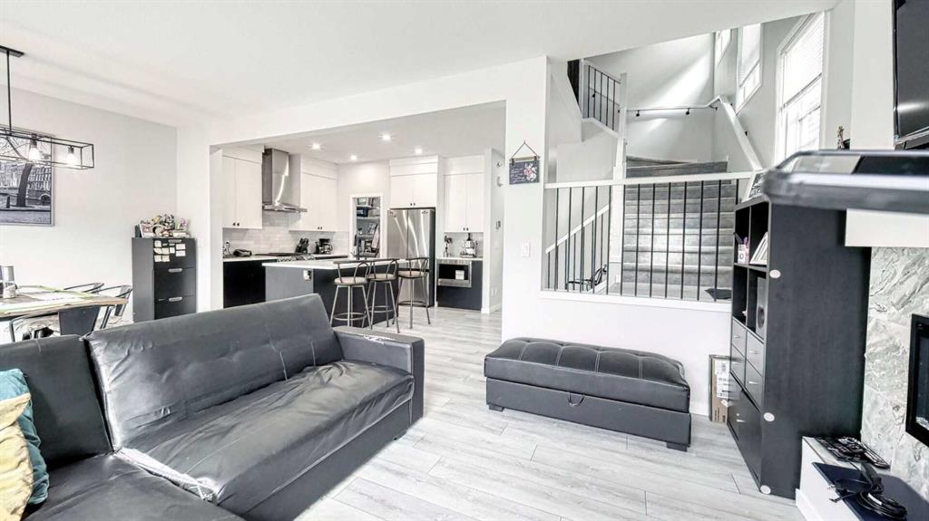 The main floor impresses with soaring 10-foot ceilings, elegant vinyl flooring, and a cozy fireplace anchoring the open-concept layout. At its heart, the kitchen is a chef’s dream, featuring quartz countertops, premium stainless steel appliances, a generously sized pantry, and a gas stove — ideal for daily living and entertaining alike. A bedroom at the foye includes a private 4-piece bathroom and separate entrance, perfect for a home office, guest suite, or potential rental space.