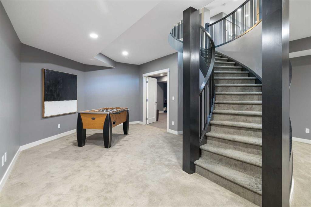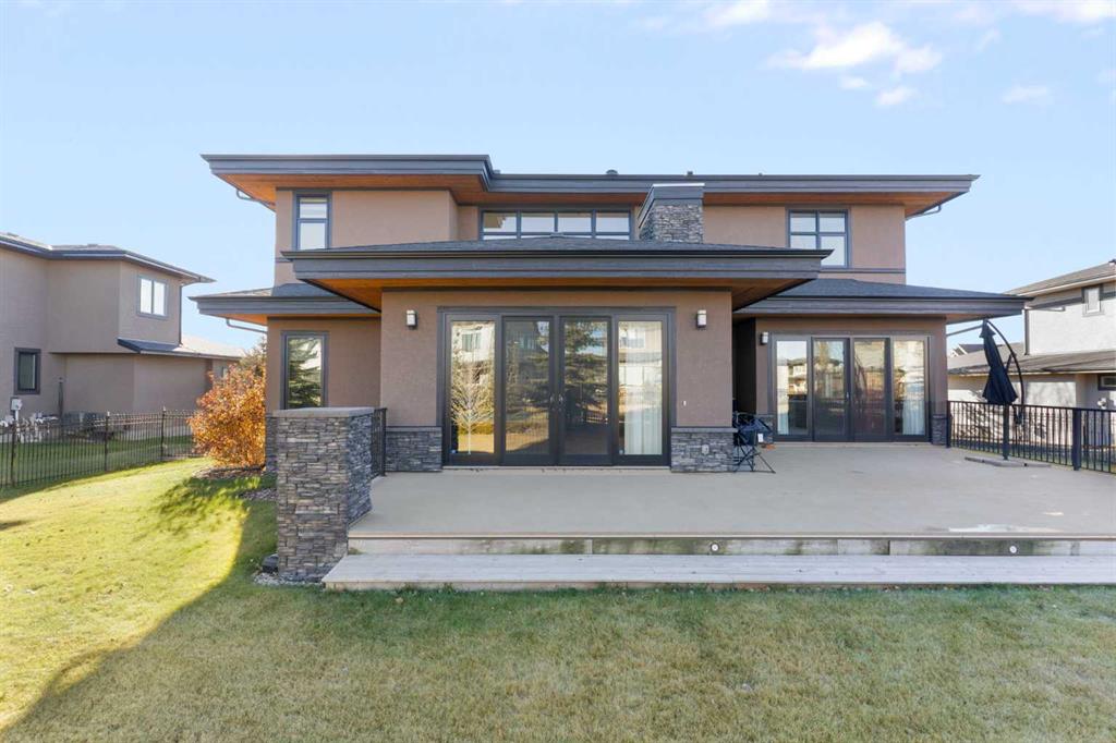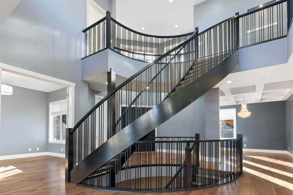 Welcome to 67 Stoneypointe Place, nestled in the award-winning Watermark community in Rural Rocky View County. This stunning luxury home offers the perfect blend of timeless design, modern comfort, and an unbeatable location – peacefully surrounded by nature, yet just a short drive from Calgary. This exceptional residence showcases four generously sized bedrooms, an executive office, three and a half elegantly appointed bathrooms, and a private home theatre – perfectly curated for both refined daily living and sophisticated entertaining. A grand curved staircase sets the tone as you enter, unveiling an expansive open-concept layout that flows effortlessly from one impeccably designed space to the next. The main floor boasts soaring 10-foot ceilings, while the upper level and fully finished basement feature 9-foot ceilings, creating a bright, airy atmosphere. Expansive windows throughout flood the home with natural light, adding warmth and charm to every space. A large formal dining room is perfect for family gatherings, while the living room—complete with a cozy fireplace—opens directly to the expansive back deck, ideal for relaxing or hosting guests year-round. You’ll also find a well-sized main floor executive office, thoughtfully positioned for privacy and filled with natural light—perfect for working from home or managing daily tasks. The home features hardwood and tile flooring on the main level, soft carpeting in the basement, and central air conditioning for year-round comfort. The luxurious kitchen is a true centerpiece, equipped with premium appliances, a walk-through pantry, and convenient access through the mudroom from the spacious 3-car garage. Step outside to enjoy the expansive rear deck and private, fenced backyard—perfect for peaceful mornings or evening gatherings. Located just minutes from Calgary and within easy reach of Canmore and Banff, this home offers the best of both worlds: natural beauty and urban convenience. Surrounded by golf courses, shopping, and walking paths, Watermark is where lifestyle meets luxury and comfort in perfect harmony. This is more than a home—it’s your next chapter. Come see it for yourself.
