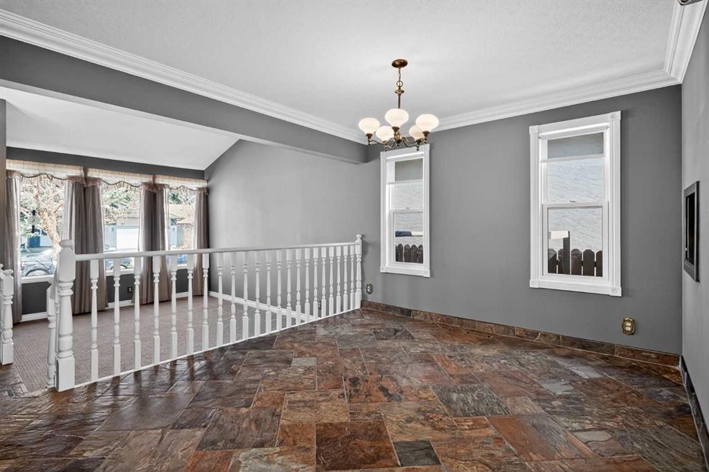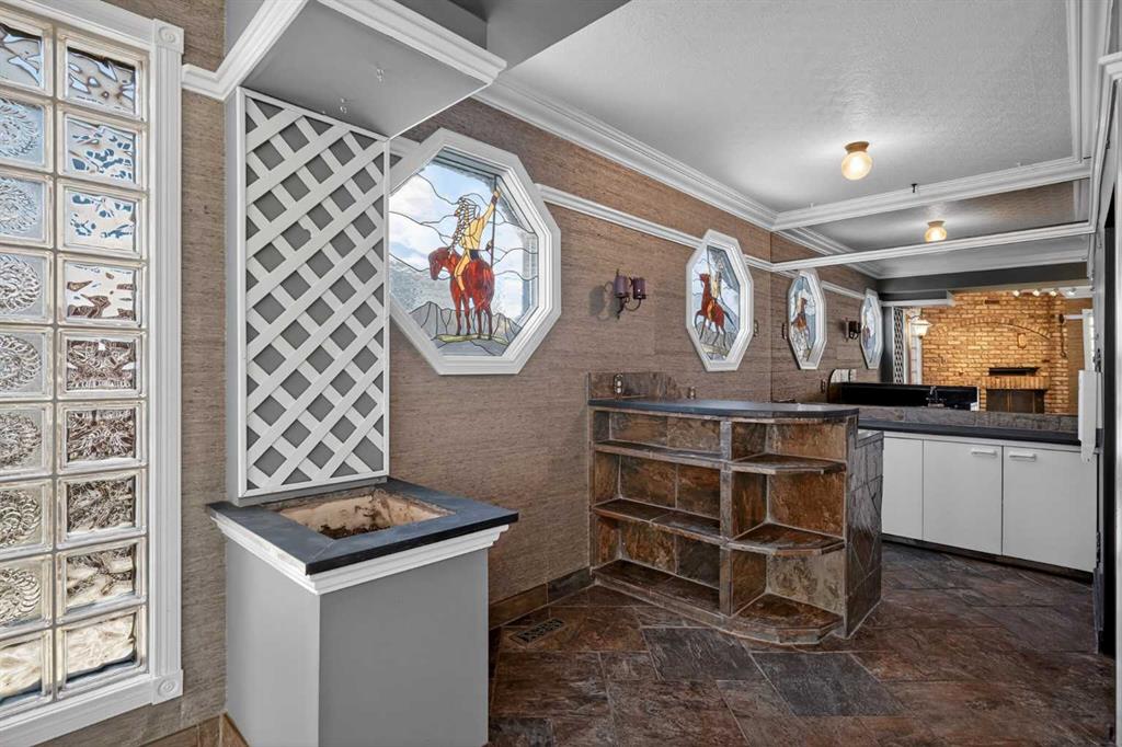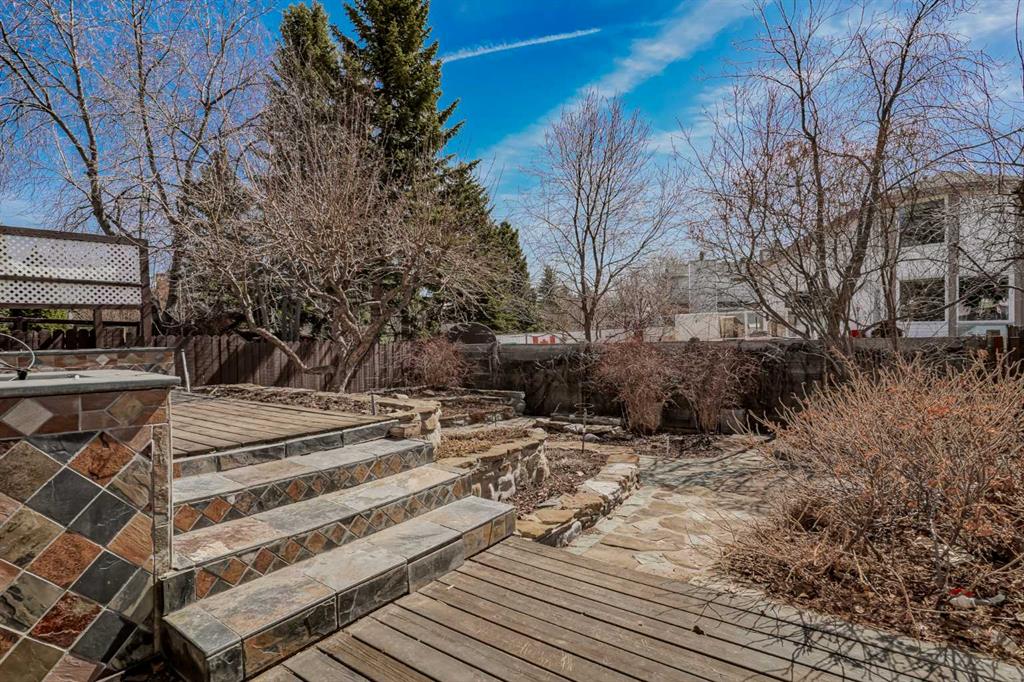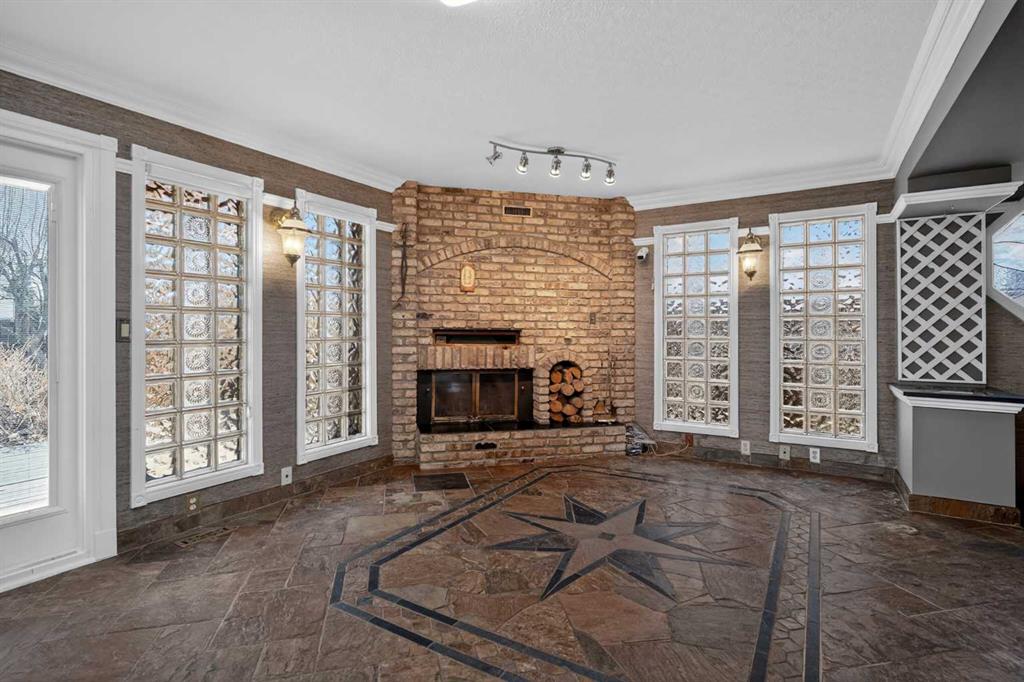In the quiet, deep-rooted community of Woodlands, where the trees have had time to grow thick, and the sprawling wild of Fish Creek Provincial Park lies just a stone’s throw away, sits a house that has known the steady rhythm of a single family since the nineteen-eighties. Standing firmly at 67 Woodstock Road SW, it offers 1,833 square feet of life above the earth, shaped over decades by hands that favoured quiet creativity over the plain or the ordinary, laying slate upon the floors and setting intricate mosaics with deliberate care. It does not mirror the sterile, gray trends of today, but it possesses something far rarer: a rugged, undeniable soul. Upon entry, the home breathes easily, opening into a formal living room beneath vaulted ceilings before stepping up to a raised, separate dining room – a dignified arrangement rarely built in these hurried times. Beyond this lies the kitchen and a breakfast nook that looks out onto the golden arc of the southern sun and a magical, terraced backyard built for a gardener, complete with an outdoor brick fireplace waiting for woodsmoke and quiet evenings. Inside, the kitchen opens freely to the family room, a space designed with purpose and heralded by a brick-faced, wood-burning fireplace of its own. The main floor continues to unfold with a dedicated bar, a large walk-in closet ready to swallow up heavy winter wear, and a two-piece bathroom just inside the door leading to the heated, attached garage. The stairs carry you up to three generous bedrooms, including a primary suite that offers a quiet retreat, complete with a solid three-piece ensuite bathroom, a walk-in closet, and a private balcony where one can stand and look out over the life of the yard below. A four-piece bathroom with a steam shower serves the remaining two bedrooms, rooms that have held the echoes of a family growing up. Down below, the basement digs into the earth to provide a den or flex room, a secondary living space for recreation, another two-piece bathroom, and ample storage cabinets for the tools and keepsakes of a life well lived. Though the home stands empty now, ready to embrace a new vision, its bones have been well cared for, with an updated furnace, replaced windows, and the modern comfort of central air conditioning. An honest home, waiting patiently for the writing of its next chapter.