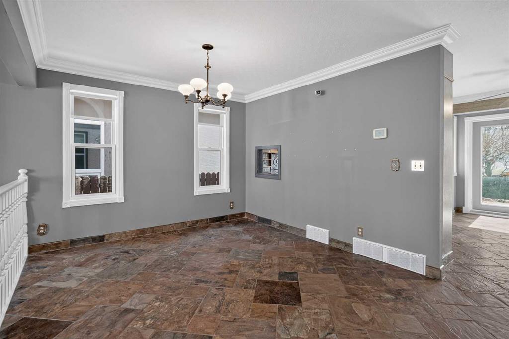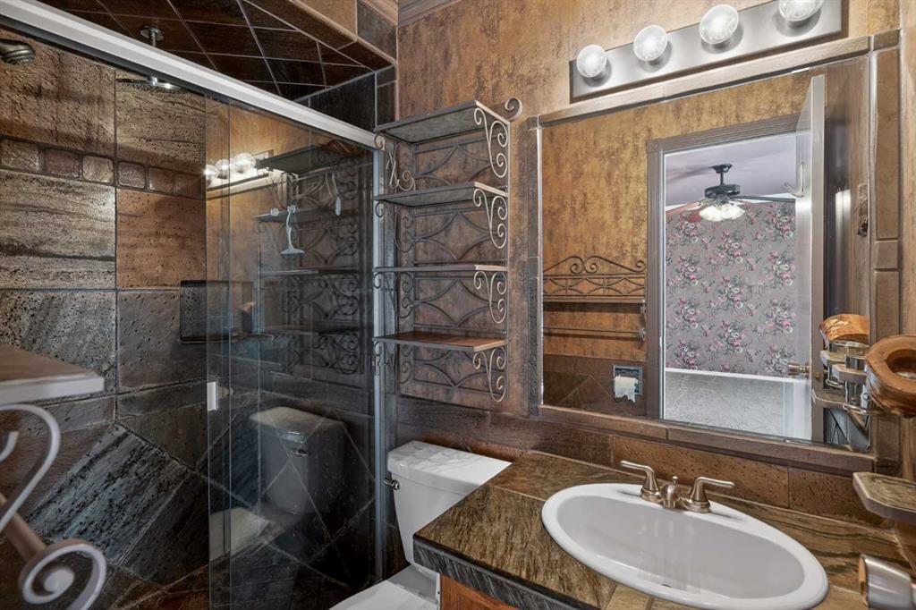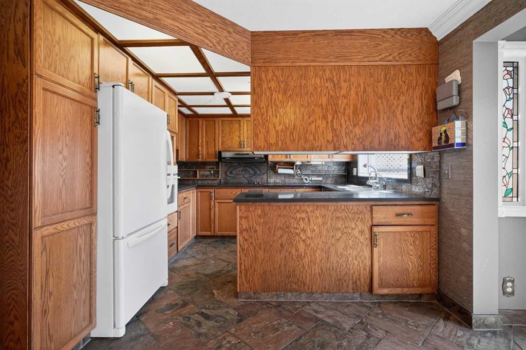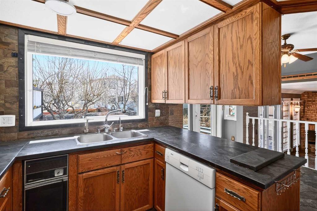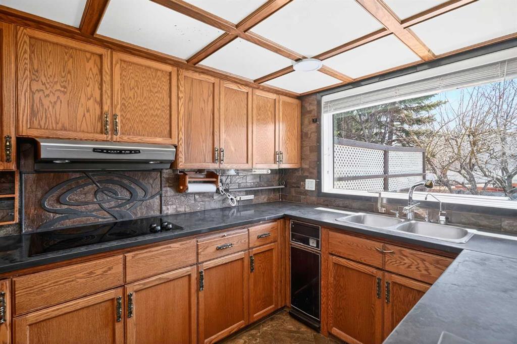 In the quiet, deep-rooted community of Woodlands, where the trees have had time to grow thick, and the sprawling wild of Fish Creek Provincial Park lies just a stone’s throw away, sits a house that has known the steady rhythm of a single family since the nineteen-eighties. Standing firmly at 67 Woodstock Road SW, it offers 1,833 square feet of life above the earth, shaped over decades by hands that favoured quiet creativity over the plain or the ordinary, laying slate upon the floors and setting intricate mosaics with deliberate care. It does not mirror the sterile, gray trends of today, but it possesses something far rarer: a rugged, undeniable soul. Upon entry, the home breathes easily, opening into a formal living room beneath vaulted ceilings before stepping up to a raised, separate dining room – a dignified arrangement rarely built in these hurried times. Beyond this lies the kitchen and a breakfast nook that looks out onto the golden arc of the southern sun and a magical, terraced backyard built for a gardener, complete with an outdoor brick fireplace waiting for woodsmoke and quiet evenings. Inside, the kitchen opens freely to the family room, a space designed with purpose and heralded by a brick-faced, wood-burning fireplace of its own. The main floor continues to unfold with a dedicated bar, a large walk-in closet ready to swallow up heavy winter wear, and a two-piece bathroom just inside the door leading to the heated, attached garage. The stairs carry you up to three generous bedrooms, including a primary suite that offers a quiet retreat, complete with a solid three-piece ensuite bathroom, a walk-in closet, and a private balcony where one can stand and look out over the life of the yard below. A four-piece bathroom with a steam shower serves the remaining two bedrooms, rooms that have held the echoes of a family growing up. Down below, the basement digs into the earth to provide a den or flex room, a secondary living space for recreation, another two-piece bathroom, and ample storage cabinets for the tools and keepsakes of a life well lived. Though the home stands empty now, ready to embrace a new vision, its bones have been well cared for, with an updated furnace, replaced windows, and the modern comfort of central air conditioning. An honest home, waiting patiently for the writing of its next chapter.