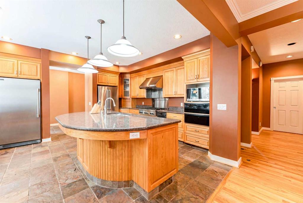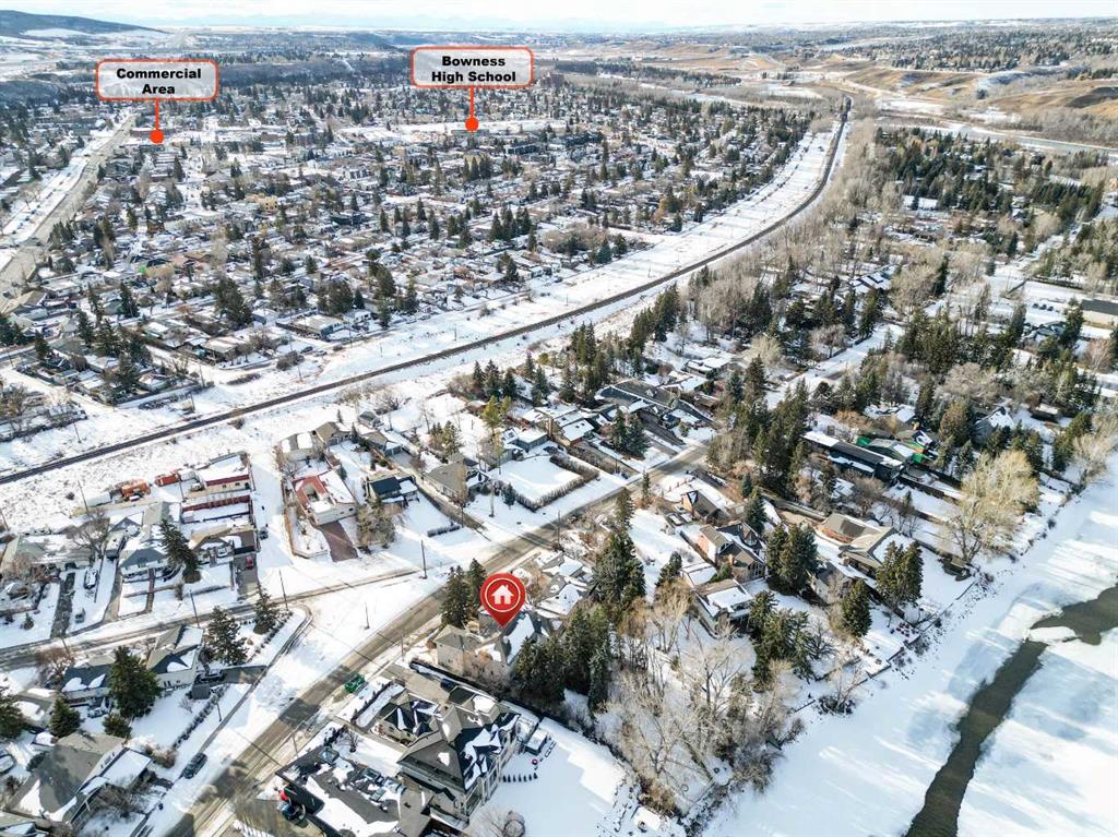Introducing a truly one-of-a-kind gem nestled along the pristine banks of the Bow River, move-in ready and attractively priced with strong investment potential! This spectacular riverfront property offers a rare combination of luxury, space, and scenic beauty, boasting a triple attached garage and backing directly onto the river for unparalleled views and access. The main level offers a massive private office, living room with custom built-in bookcases, a well-appointed kitchen featuring granite countertops and stainless steel appliances, and a bright family room highlighted by expansive river views. Upstairs includes five generously sized bedrooms and three full bathrooms, providing ample space for family and guests. A fully finished basement adds valuable living space, ideal for recreation, entertaining, or extended family use, with two more bedrooms and a three piece bath. Conveniently located, Bow River pathways are outside your back gate & close by are Bowness Park, schools, shopping, public transit & easy access to 16th Avenue. Don’t miss this opportunity to own a riverfront oasis—properties like this are rarely available and don’t last long.