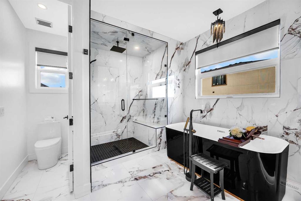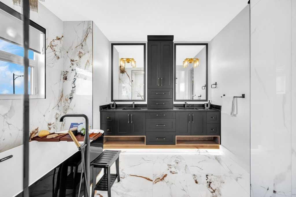 Upstairs, the primary suite redefines luxury. Spacious, serene, and thoughtfully designed, it’s complemented by a five-piece ensuite that rivals a high-end spa — think soaking tub, dual vanities, and refined finishes that elevate every moment of your routine.