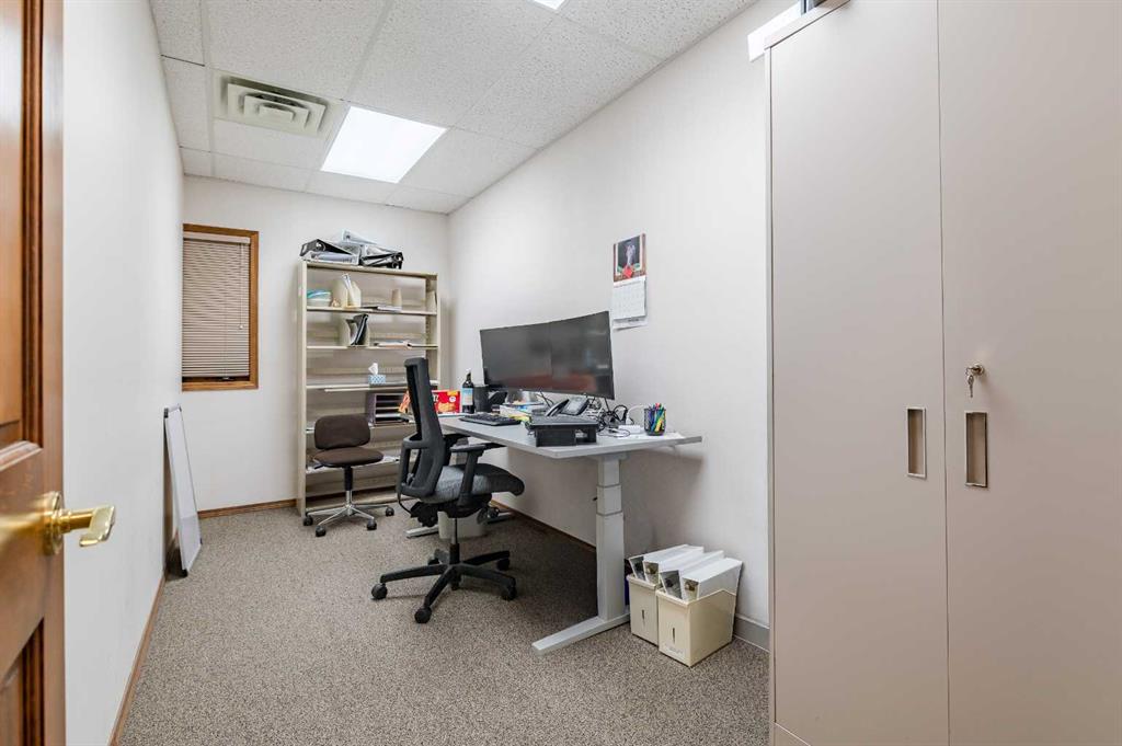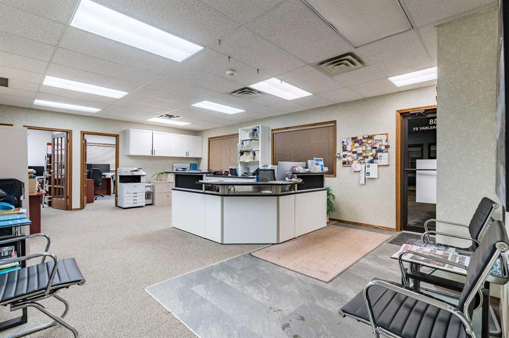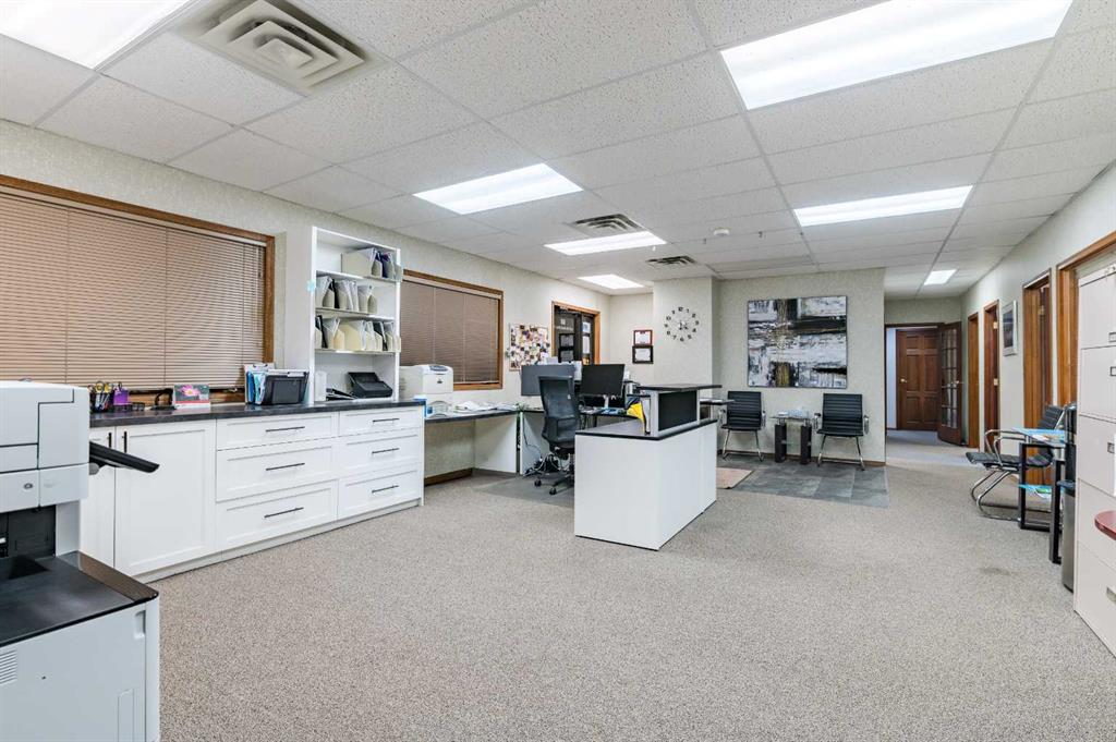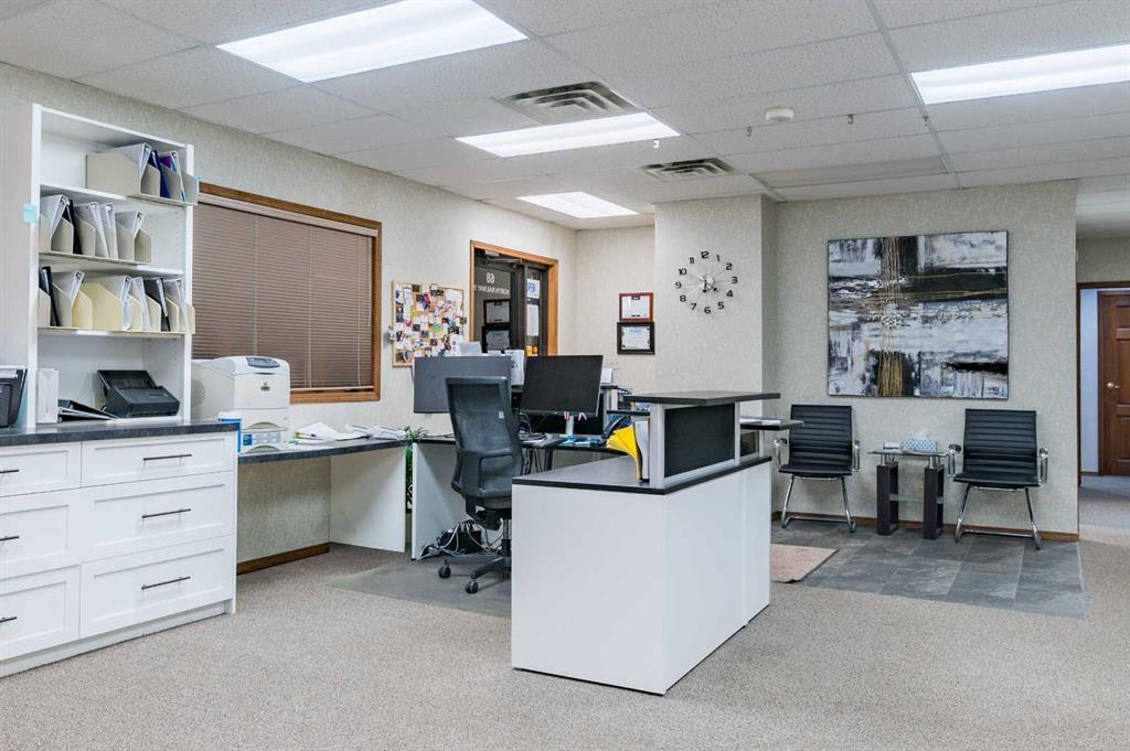 Well-located commercial building in Okotoks offering an excellent corner exposure and on-site parking. This 2,275 sq. ft. air-conditioned space features five private offices, a welcoming reception area, a dedicated meeting room, and two bathrooms. Large windows throughout provide excellent natural light. Situated in a high-traffic area with outstanding visibility, the property is further enhanced by in-floor heating, making it an efficient and comfortable workspace year-round.