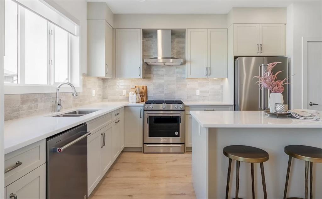 Welcome to the Edward by Partners Homes in Homestead, a brand new home designed for buyers who want space, flexibility, and thoughtful upgrades in one of NE Calgary’s growing communities. With 4 bedrooms, 3 full bathrooms, a bonus room, and a separate side entrance for future basement development, this home offers a layout that works well for both current needs and long-term planning. One of the standout features of this plan is the main floor bedroom paired with a full bathroom, complete with a tiled shower. This setup is ideal for guests, extended family, or anyone looking for a more versatile main level. The kitchen is both functional and well finished, featuring quartz countertops, full-height cabinetry with enclosed bulkhead, soft-close cabinet doors and drawers, an upgraded backsplash, stainless steel appliances, washer and dryer, a gas range rough-in, chimney hood fan, and built-in microwave. Luxury vinyl plank and luxury vinyl tile flooring, along with 9 foot ceilings on the main floor, add to the clean and modern feel of the space. Upstairs, the primary bedroom offers a walk-in closet and a private ensuite with dual sinks and a tiled shower. Two additional bedrooms, another full bathroom, upper floor laundry, and a central bonus room provide the extra space that makes everyday living more comfortable and practical. The basement features 9 foot ceilings and a separate side entrance for future basement development, offering added flexibility over time. Front landscaping is included, and the rear lane gravel parking pad adds everyday convenience. Homestead is a community built for connection and growth, with over 4 kilometres of walking paths, a 19-acre wetland, and future schools, parks, and sports fields planned throughout the area. With access to major routes and everyday amenities, this is a great opportunity to own a new construction home in Calgary with modern finishes and a family-friendly layout.