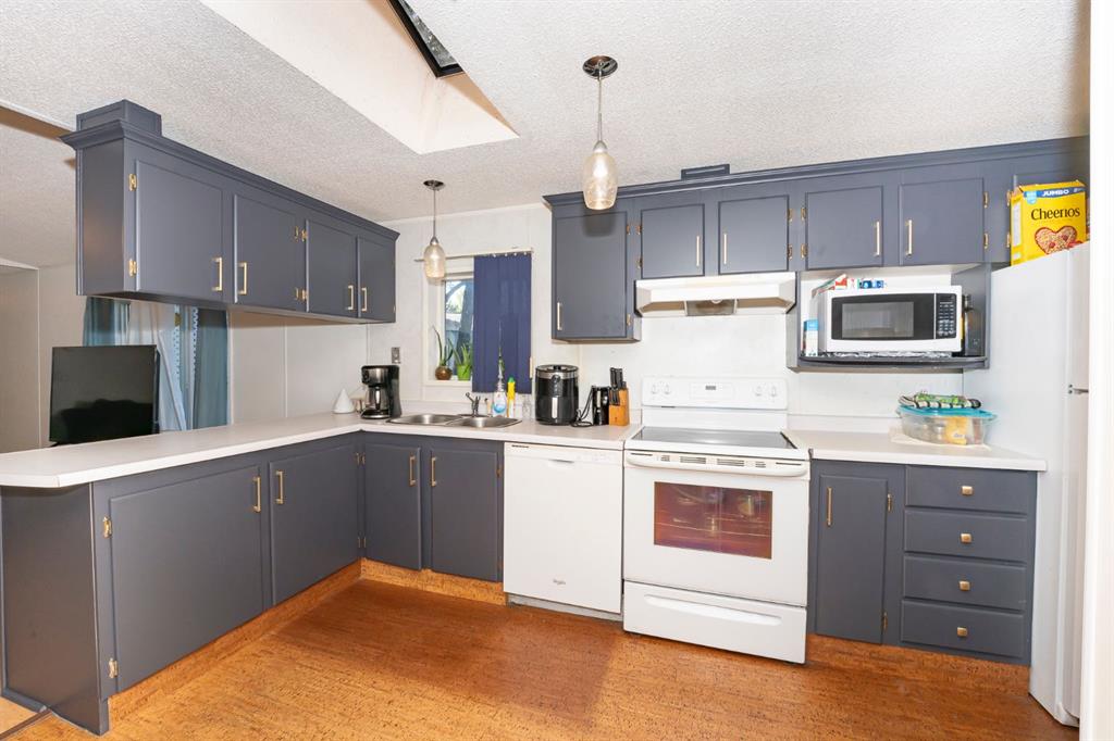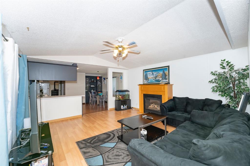 Welcome to Parkridge Estates, one of Calgary’s top adult communities. This spacious and well-maintained home offers over 1,440 sq. ft. of single-level living with an open floor plan that includes a bright living room with a gas fireplace, a dining area with custom built-ins, and a kitchen with plenty of cabinets and counter space. A large family/games room with its own gas stove provides the perfect space for entertaining or relaxing. The primary bedroom easily fits a king bed and features a walk-in closet and private 4-piece ensuite, while two additional bedrooms and another full bath offer great flexibility for guests, family, or a home office. The laundry room provides extra storage, and recent updates include a high-efficiency furnace (2021) and new exterior siding (2021). Outside, enjoy parking for two vehicles, a private side yard with room for a patio, and direct access to a greenbelt pathway for walking and cycling. Parkridge Estates is a 16+ community where pets are welcome with board approval — book your private showing today!