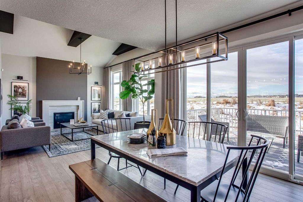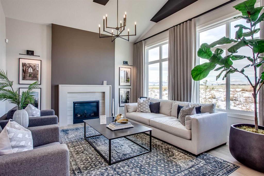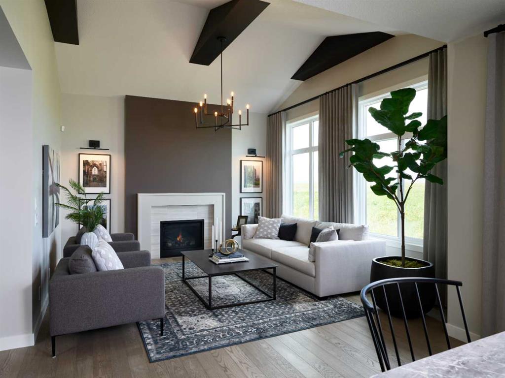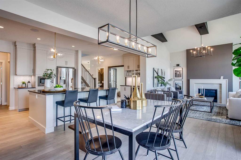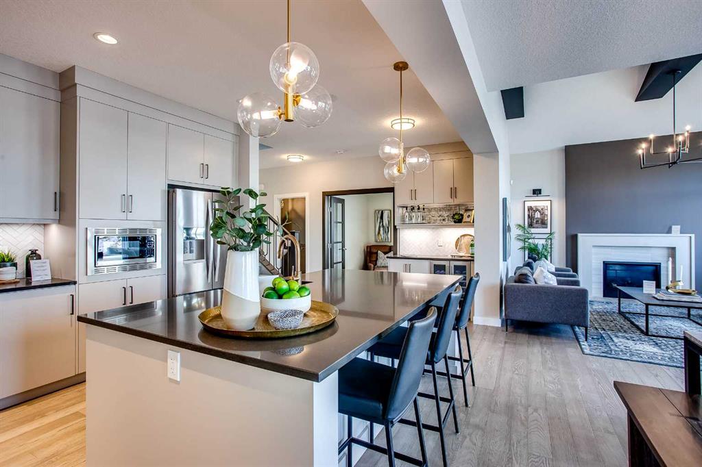Exquisite Former Show Home with Majestic Mountain Views. Welcome to the “Hennessy III” by Calbridge Homes, an award-winning former show home where sophisticated designer upgrades meet an unparalleled lifestyle location. Backing onto a serene green space with a coveted west-facing backyard, this residence offers a front row seat to breathtaking Rocky Mountain sunsets. The interior is bathed in natural light, highlighted by wide-plank hardwood floors and custom designer lighting throughout an open-concept layout masterfully planned for both intimate family life and grand-scale entertaining. The gourmet chef’s kitchen serves as the heart of the home, featuring full-height cabinetry, a massive breakfast bar island, premium stainless steel appliances with a gas range, and a substantial butler’s pantry for seamless organization. In the grand great room, soaring vaulted ceilings with wood beams and a tiled fireplace create a sense of scale, while a signature wall of windows perfectly frames the outdoor oasis. For those seeking a quiet workspace, elegant French doors lead to a dedicated den perfect for a sophisticated home office. The upper level is a true sanctuary of comfort, led by a primary retreat featuring a massive walk-in closet and a spa-inspired ensuite with dual vanities, an oversized shower, and a deep soaker tub. A versatile central bonus room offers the ideal loft space for movie nights, complemented by three additional bright bedrooms, a full family bathroom, and a conveniently located laundry room. The professionally finished basement significantly extends the living space, offering a massive recreation area and a fully equipped wet bar with a beverage fridge. A large fifth bedroom and full bathroom provide a private suite for guests or older children. Complete with a generous triple-car garage, this home is close to the incredible walking paths that lead you throughout the parks and playgrounds this community has to offer. Enjoy unbeatable convenience being just minutes from the C-Train, YMCA, community center, and a vibrant array of local shops and dining. Experience the pinnacle of craftsmanship and scenery in this rare property. Call today for your personal viewing.
