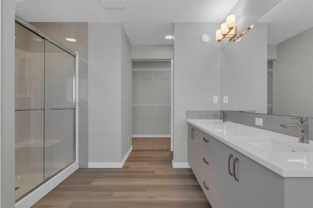 BRAND NEW – NEVER LIVED IN! A gorgeous new home built by Excel Homes! Presenting the Oxford A, this stunning residence offers over 2560 sq ft of above-grade living plus an amazing LEGAL TWO BEDROOM SUITE built to upstairs standards. Perfectly located in Silver Spruce, the newest subdivision in Calgary’s highly desirable community of Silverado, this home combines modern design with everyday convenience. You’ll love the community’s established feel, along with easy access to transit, major arteries, golf, shopping, schools, and parks. Even better, this property backs directly onto an environmental reserve, ensuring lasting backyard privacy. Step inside and experience the upgrades everywhere you turn. The main floor is bright and open with oversized windows filling the home with natural daylight. A full 4-piece bath is conveniently located next to the main floor bedroom, perfect for guests or family. The heart of the home is the chef-inspired kitchen with crisp white cabinetry, endless drawers and cabinets, a large walk-in pantry, built-in stainless steel oven and microwave, countertop range with chimney hood fan, and an impressive 9’ island for prep and gathering. Adjacent to the family-sized dining nook, sliding patio doors lead to a massive full-width deck overlooking the reserve, while the family room is anchored by a cozy fireplace with floor-to-ceiling tile surround. Upstairs, the layout delivers 4 spacious bedrooms including a serene primary retreat with views of the reserve, a spa-inspired 5-piece ensuite with stone countertops, double wide shower, and a tile-skirted soaker tub. Bedrooms 2 and 3 both feature walk-in closets, while every room is filled with natural light. A central bonus room separates the primary from the secondary bedrooms, creating privacy, and the upper laundry room offers shelving and functionality. The 4-piece family bathroom on this level is designed with dual sinks—perfect for busy mornings. The legal suite is just as impressive, offering its own fully equipped kitchen, a spacious family room, 4-piece bath, and two large bedrooms with egress windows. Private storage, under-stair storage, and separate utilities make this a turnkey opportunity for multi-generational living or revenue potential. Certified Built Green, this home is energy-efficient and designed with today’s lifestyle in mind. Your garage has high ceilings & epoxy floors! With 5 bedrooms above grade plus 2 in the suite, luxury finishes throughout, and quick possession available, this property is an absolute must-see.