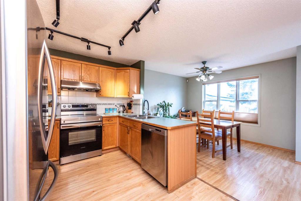 Welcome to this bright inviting family home on a quiet corner lot in the great community of Coventry Hills, just steps from schools and everyday amenities. The main floor features easy-care laminate flooring, a bright living room with a large front window, and a functional kitchen with an island peninsula and spacious dining area—perfect for family meals or entertaining. A convenient 2-piece bathroom and main floor laundry complete the space. Upstairs offers three well-sized bedrooms, each with its own walk-in closet. The primary bedroom also enjoys direct access to the main bathroom. The unfinished basement with roughed-in plumbing is ready for your personal touch. Outside, you’ll find a large yard, parking for two vehicles, and a storage shed for extra storage. Recent updates include roof and siding (2025) and furnace and hot water tank (2023), making this home a smart and worry-free choice. Book your showing today.