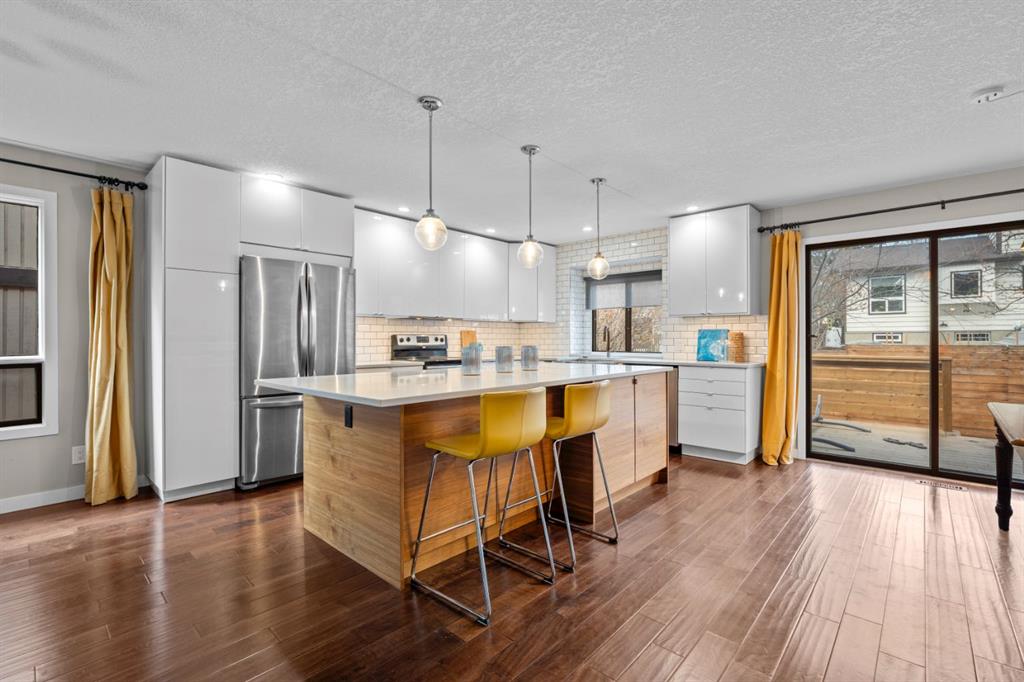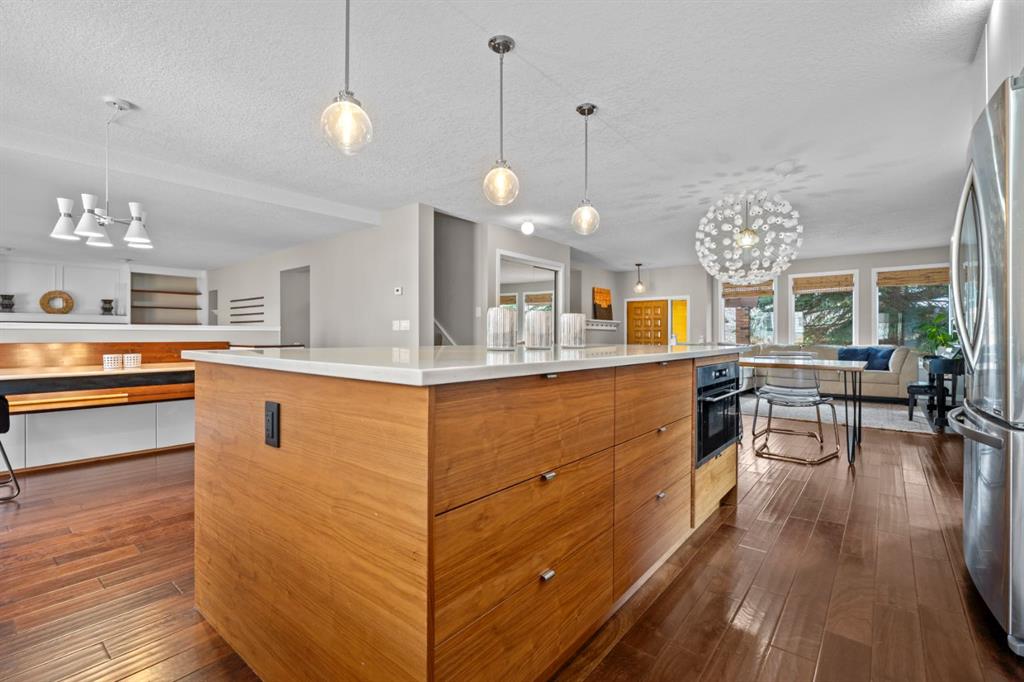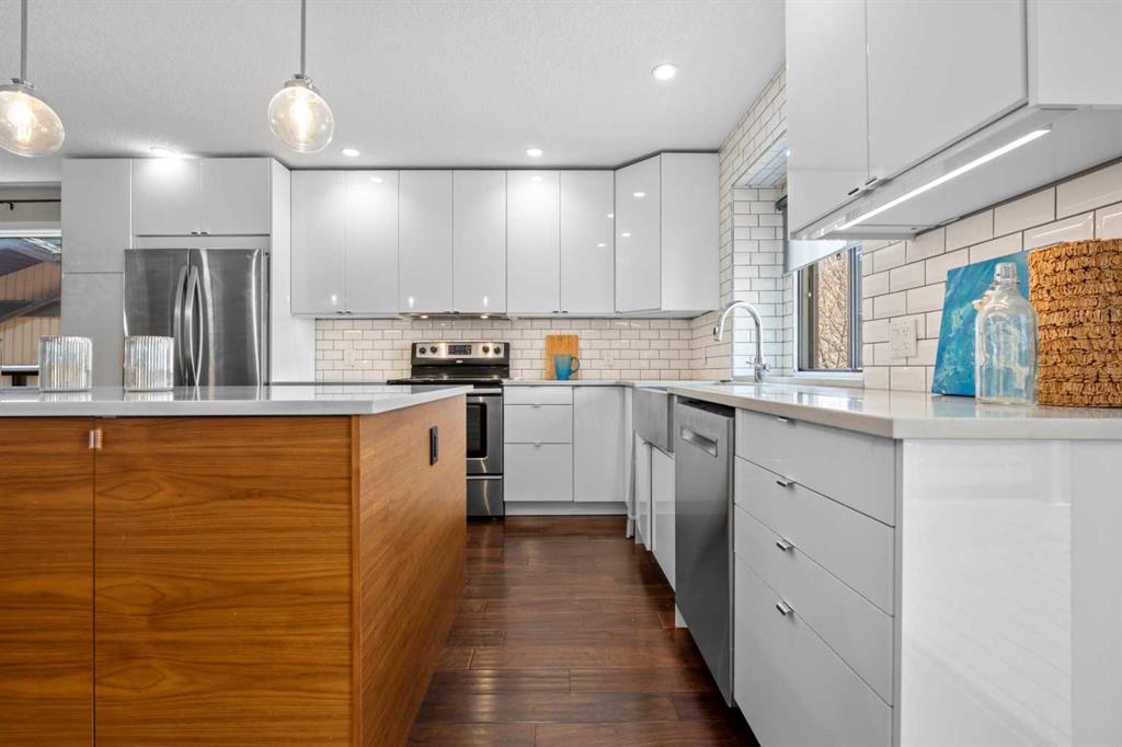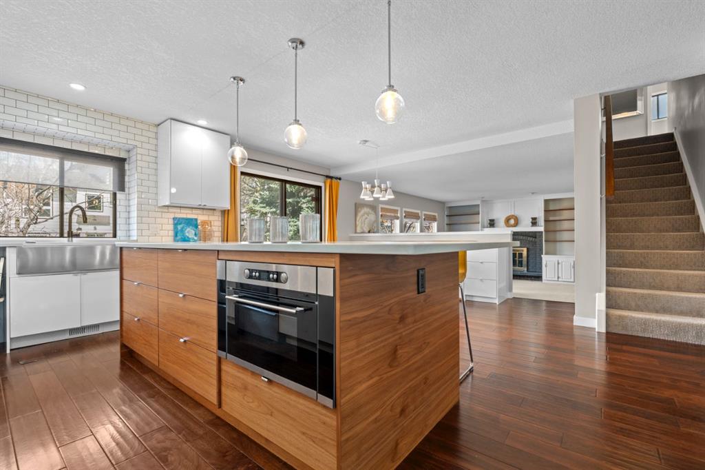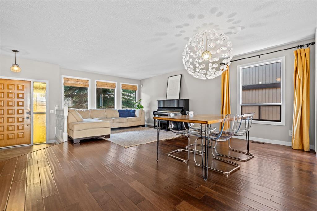 Welcome to the prestigious and highly sought-after community of Edgemont! Location is key. Just minutes from Nose Hill Park and being surrounded by the extensive pathway system within Edgemont, this setting offers easy access to nature while remaining conveniently connected to transit, highly rated public & separate schools, and numerous everyday amenities. Nestled in a quiet cul-de-sac, this beautiful family home offers just under 2,100 square feet of above-grade living space, plus a fully developed basement, 5 bedrooms, 4 full bathrooms, and plenty of upgrades! As soon as you set foot inside, you’re welcomed by the open, spacious layout that has been masterfully planned and executed. Discerning tastes will appreciate the knockdown ceilings that have replaced outdated stipple – an upgrade that’s consistent throughout the home. The formal living and dining areas are generously sized and filled with natural light from the numerous windows. Sleek, modern, and inviting describe the kitchen, which acts as the heart of the home. It features a large central island with quartz countertops, two-toned cabinetry, an attractive subway tile backsplash that extends to the ceiling, stainless steel appliances, plenty of storage, and a seamless connection to the breakfast area with bench seating. This space overlooks the grand family room which offers a cozy wood-burning fireplace, attractive built-in shelving, and abundant light/exposure to the expansive backyard through the set of large windows. The main level of the home also has a bedroom (or office/den), a full 3-piece bathroom, and a laundry area, easily accommodating single-level living. Upstairs, the primary bedroom acts as a private retreat, complete with its own ensuite and access to a south-facing solarium! Few properties offer such a delightful space to suit your lifestyle whether it be for working out, meditating, growing, reading, or simply relaxing. This level also has two additional bedrooms and a 4-piece main bathroom to provide comfortable accommodations for family or guests. The developed basement has been attractively finished with luxurious vinyl plank flooring, brand new windows, wet bar rough-in, another spacious bedroom, and a modern 3-piece bathroom. In addition, the massive recreation room is suitable for multipurpose use, such as a home gym, media area, hobby space, or playroom. With 4 windows in this section, it is bright and offers endless possibilities! There’s so much value in this home, so don’t miss this opportunity. Call your favorite realtor today to schedule a viewing!