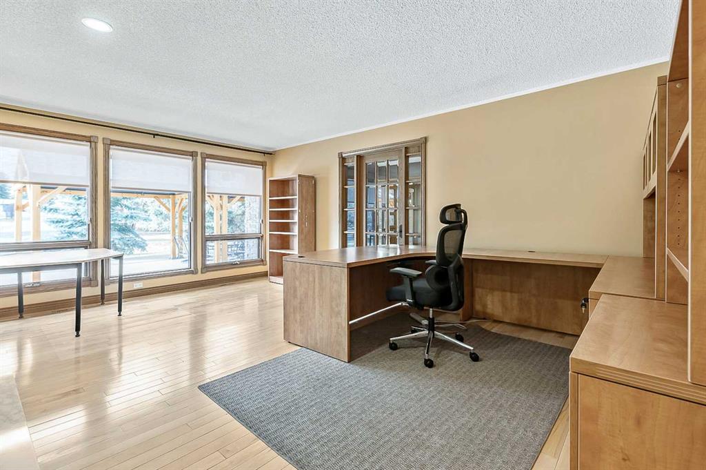 VIEWS VIEWS VIEWS! Welcome to this exceptional seven-bedroom, three-and-a-half-bathroom estate home in the prestigious Elbow River Estates community. Offering over 3,700 square feet of thoughtfully designed living space, this impressive two-storey residence is perfectly positioned on a premium lot capturing fantastic mountain views from the front and sweeping, unobstructed panoramas over the Glencoe Golf Course from the rear. A grand two-storey foyer with a graceful, curved staircase sets an elegant tone upon arrival. The main level is designed to highlight the scenery, featuring a warm and inviting living room with a wood-burning fireplace and large windows that frame the picturesque surroundings. The formal dining room, highlighted by a charming bump-out, provides an ideal setting for hosting. The beautifully updated kitchen is appointed with granite countertops, oak cabinetry, stainless steel appliances, and a built-in desk, all while enjoying serene backyard views. The adjoining family room, centered around a cozy gas fireplace, opens through sliding doors to a spacious deck—an outstanding vantage point to take in the spectacular golf course vistas and unforgettable sunsets. Upstairs, the primary suite offers a luxurious private retreat enhanced by beautiful views and a two-sided gas fireplace that separates the sleeping area from a tranquil sitting space. Four additional generously sized bedrooms and a full bathroom complete the upper level, offering comfort and flexibility for family or guests. The fully developed walkout lower level continues to impress with stunning, uninterrupted views of the golf course, along with an additional bedroom, recreation room, den, wine room, and abundant storage and utility areas. Step outside to enjoy the peaceful setting and expansive open landscape beyond. A triple attached garage and a well-designed mudroom with laundry and built-in storage add everyday convenience. Residents of Elbow River Estates enjoy access to exceptional community amenities including a playground, tennis and basketball courts, a seasonal outdoor rink, and a community horse arena—all just minutes from Calgary. Nearby Clearwater Park and Calgary Academy further enhance this highly desirable location. This is a rare opportunity to own a remarkable home defined by space and truly fantastic views in one of the area’s most sought-after communities!