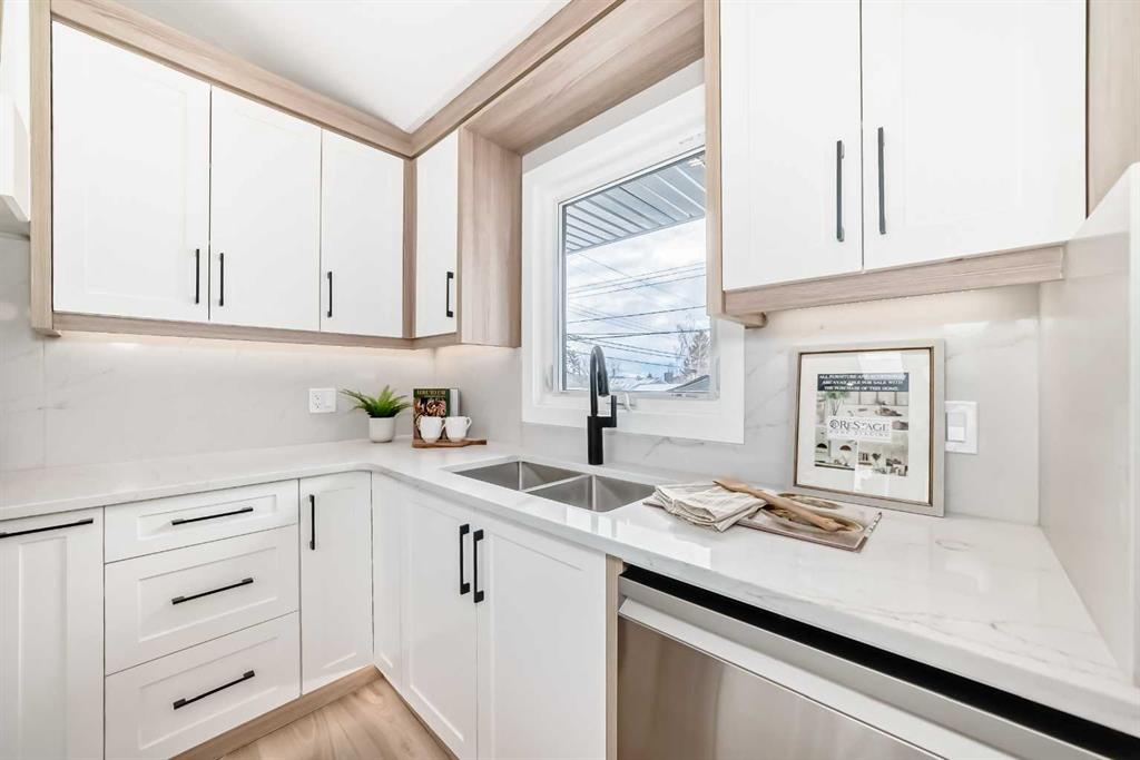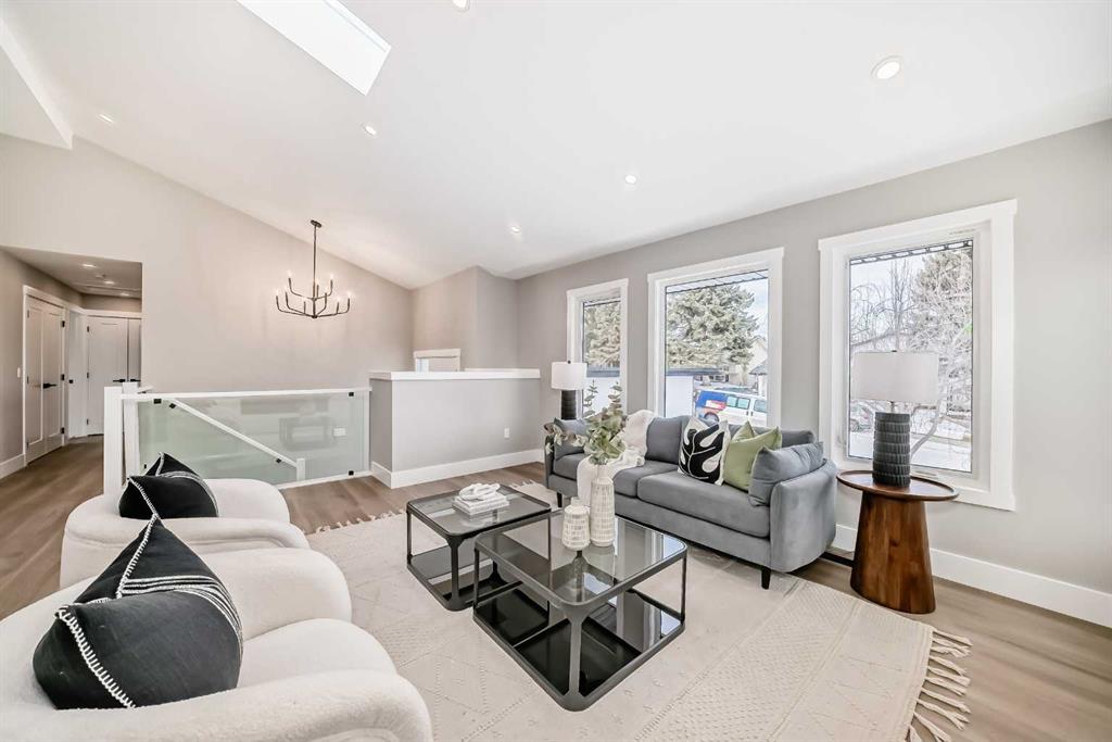 Stunning redesigned and renovated home from top to bottom. Now with new vaulted ceilings enhancing the bright and open great room spaces. Custom two toned kitchen cabinetry, with 36 inch Dacor gas stove, Samsung 4 door family hub fridge, large eat up island with waterfall quartz and easy access to south deck and yard. Mudroom also just off kitchen. Main floor has 2 bedrooms, Primary with walk in closet and 4 pc ensuite complete with plug in Japanese style toilet and laundry conveniently just off hallway. Lower level is complete with an additional 2 bedrooms, family room and office. All new windows throughout, new stucco exterior, new plumbing and electrical, new hot water tank , high effeciency furnace and newer shingles. Double front detached garage plus NEW rear single detached oversized single garage, both insulated and drywalled with mudding to be completed. Credit for south fence as ground is frozen. Lake access home , close to many schools, shops and parks. Be the first to view.