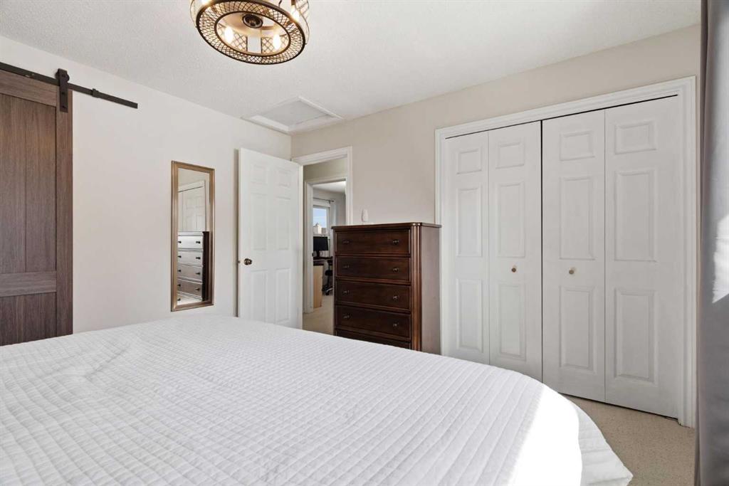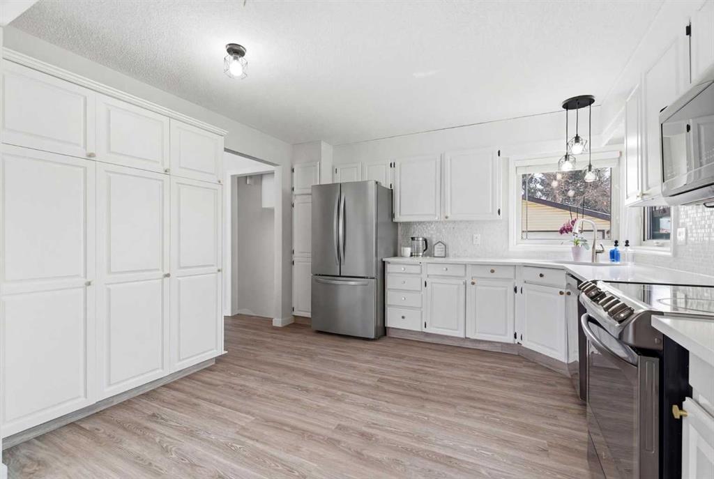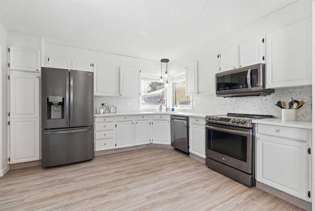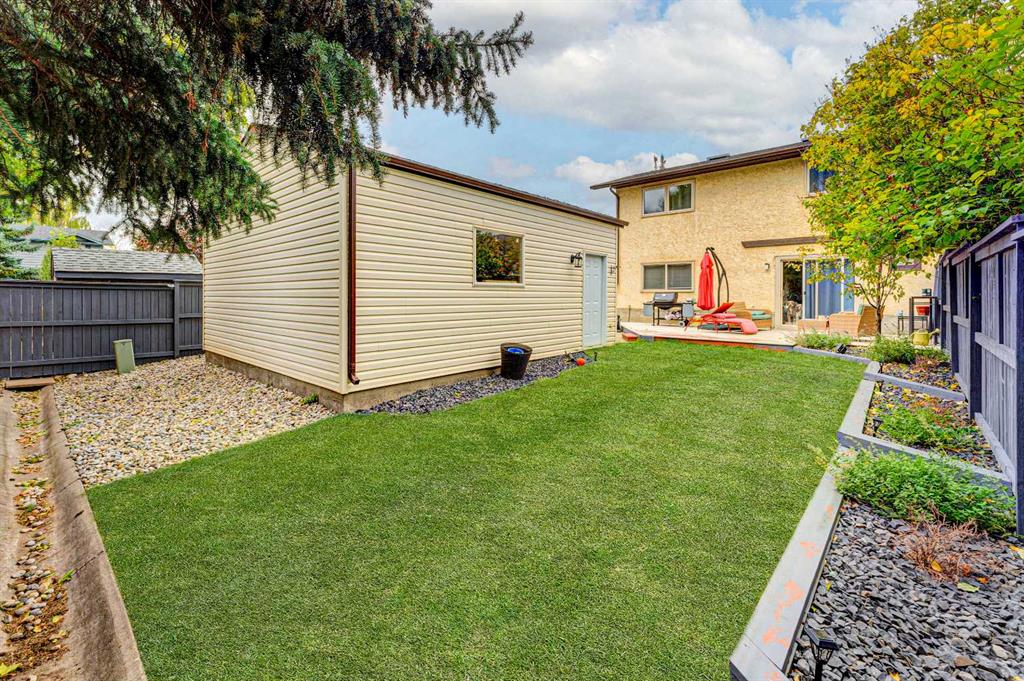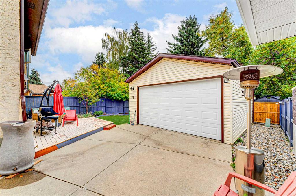 4 BEDROOMS | 2 1/2 BATHROOMS | 4-LEVEL SPLIT | 2,300+ SQFT OF LIVING SPACE | OVERSIZED DOUBLE DETACHED GARAGE | QUIET STREET | Welcome to this charming 4-level split in the desirable community of Woodbine, offering over 2,300 sqft of developed living space and incredible potential for a growing family. Nestled on a quiet street with great curb appeal and a low-maintenance yard, this home is perfectly located close to schools, parks, shopping, and offers easy access to Stoney Trail, Tsuut’ina Costco, and Fish Creek Park. Step inside to a bright and spacious main floor featuring an open and inviting living room filled with natural light. The adjoining dining area flows seamlessly into the large kitchen with quartz counters, which overlooks the sunny backyard and offers plenty of space for family meals and entertaining. Luxury vinyl plank flooring runs throughout the main living areas, adding warmth and character to the home. Upstairs, you’ll find three well-sized bedrooms including the primary retreat with a convenient 3-piece ensuite with Carrar marble and 10mm frameless glass shower. Two additional bedrooms with closets and a 4-piece bathroom complete this level, providing comfortable space for the whole family. The lower level features a cozy family room with a wood-burning fireplace, built-in shelving and wet bar, perfect for relaxing evenings, along with an additional bedroom and a 2-piece ensuite, ideal for guests or teens. The basement adds even more versatility with two additional rooms that can be used as a home office, gym, or craft space, along with a large unfinished storage area ready for your personal touch or future development. Outside, enjoy a private backyard complete with fruit trees and space to garden, along with a deep driveway leading to an oversized double detached garage with built-in shelving. This home offers a fantastic opportunity to move into a well-established, family-friendly neighbourhood with easy access to major routes, shopping centres, and endless outdoor amenities.Updates include, Kohler toilets, Delta faucets and LED lights throughout the home. Perfect as your first home or for a growing family. Book your showing today!