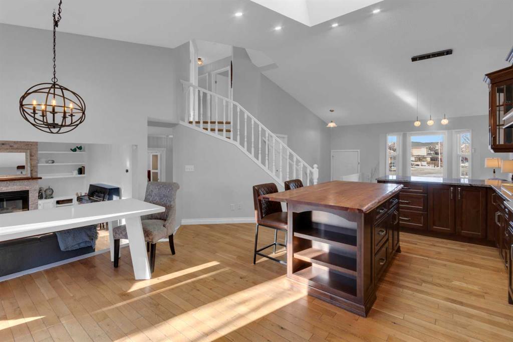 Step inside to a spacious and thoughtfully updated four-level split designed to comfortably accommodate family life. The main floor makes an immediate impression with a stunning custom kitchen by Layne Kitchens and Design. No expense was spared, with granite counters, built-in ovens, an induction cooktop, a massive island, and elegant cabinetry with convenient sliding storage features. A bright front living area with SOARING CEILINGS and a generous dining space complete this level.