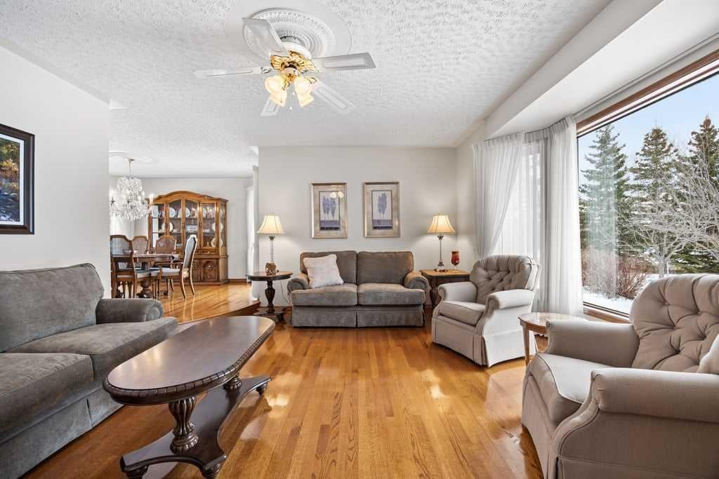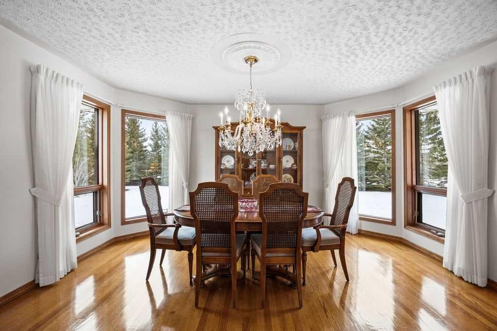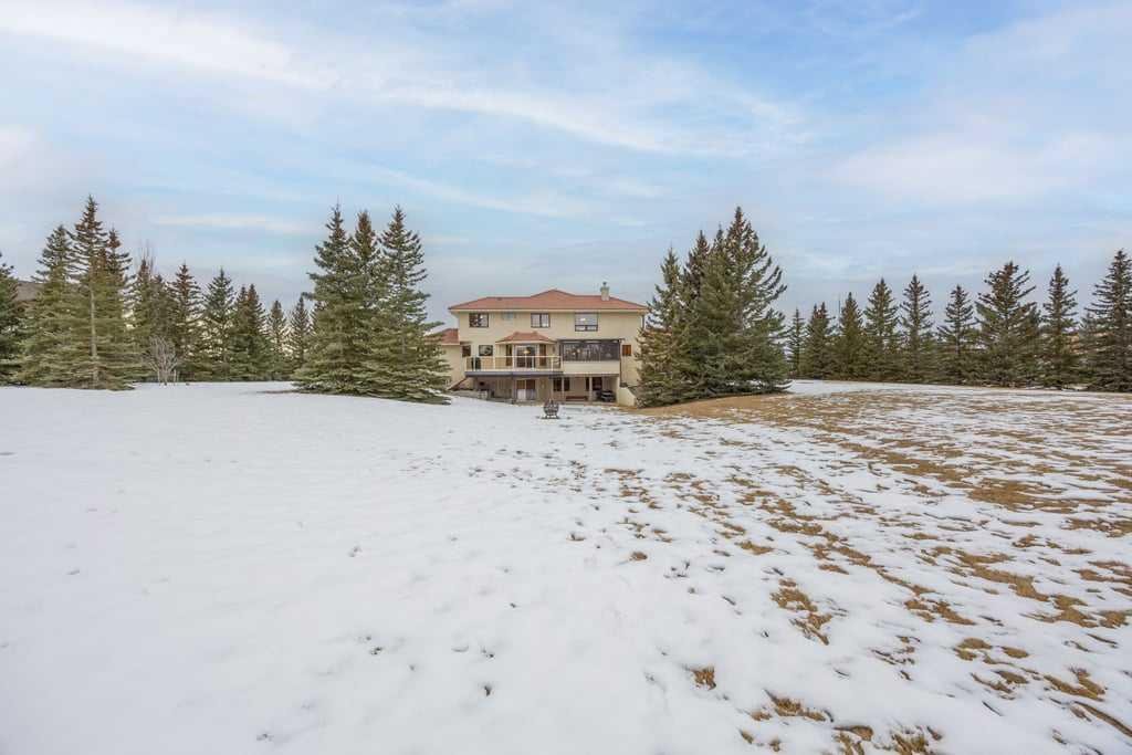 Welcome to 70 Springland Manor Crescent – ideally located in Central Springbank. This is one of the rare properties that truly has the best of both worlds; unprecedented convenience to Calgary and ultimate tranquility and privacy on your country estate acreage. This home is immaculately kept and features over 5000SF of living space with 5 Bedrooms (all upstairs) and 4 full baths. The house is perfectly positioned on a 2.03 Acre lot with extensive mature landscaping including planting beds and a wide variety of trees to showcase sequence of blooming. Park in your oversized 4 car garage, or make your way in to the grand foyer where the curved staircase and extensive millwork capture your attention. The main floor is perfect for entertaining with multiple gathering spaces including a living room, family room & formal dining room in addition to the kitchen and everyday dining area. The kitchen has spectacular views of the manicured backyard, abundant natural light with morning sun, and functional workspaces with a central island, wrap around granite countertops, and a brand new bosch wall oven. Additionally on the main is an office, laundry area and functional mudroom. Upstairs are 5 generous bedrooms including the Master which has an expansive 4 pc. Ensuite and walk-in closet. The walkout basement is perfect for those who need additional versatile space. Here you will find a wet bar, games / rec area, theatre space, den plus plenty of storage & hobby space. These spaces would be easily converted to suit a Buyers wants – whether adding a gym, or creating a sixth bedroom or guest suite. This property is located 15 minutes to downtown Calgary, 45 minutes to Canmore, and within 5 minutes of all amenities on 85th Street. Springbank is home to some of the top rated and sought after public and private schools and within a 10 minute radius to many of the nations top private schools. Pride of ownership is evident throughout and this is your opportunity to call Springland Manor, “Home.”