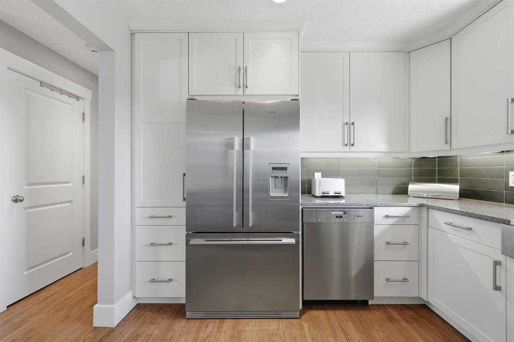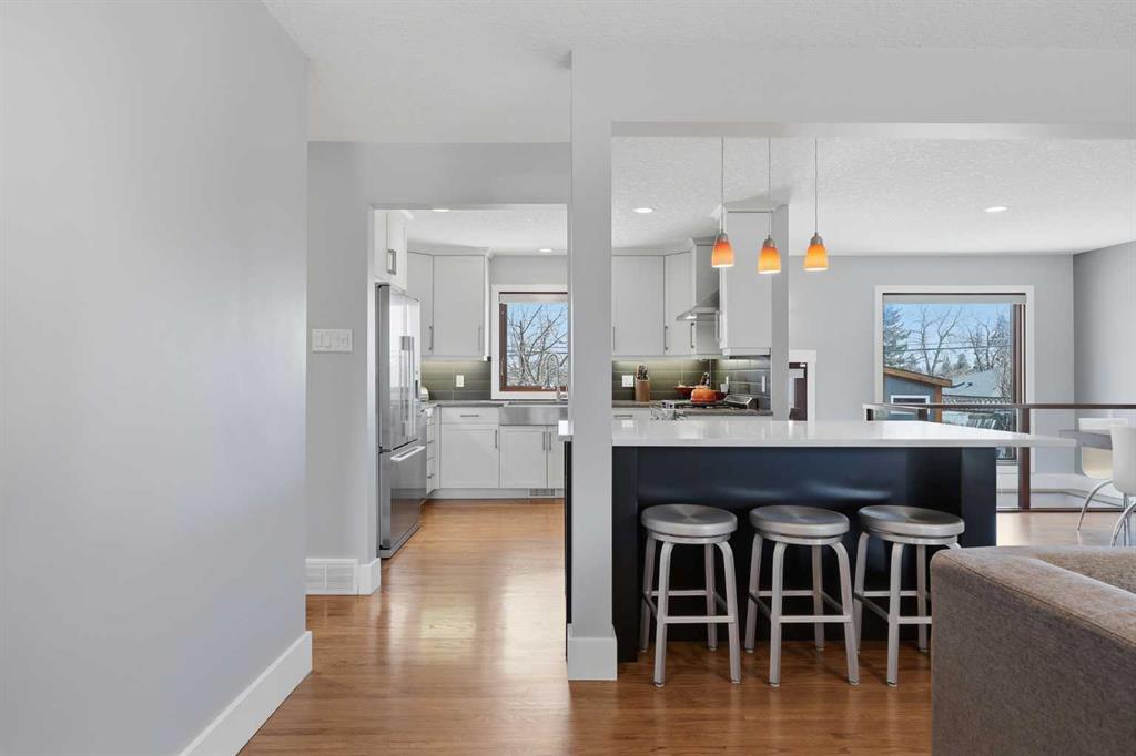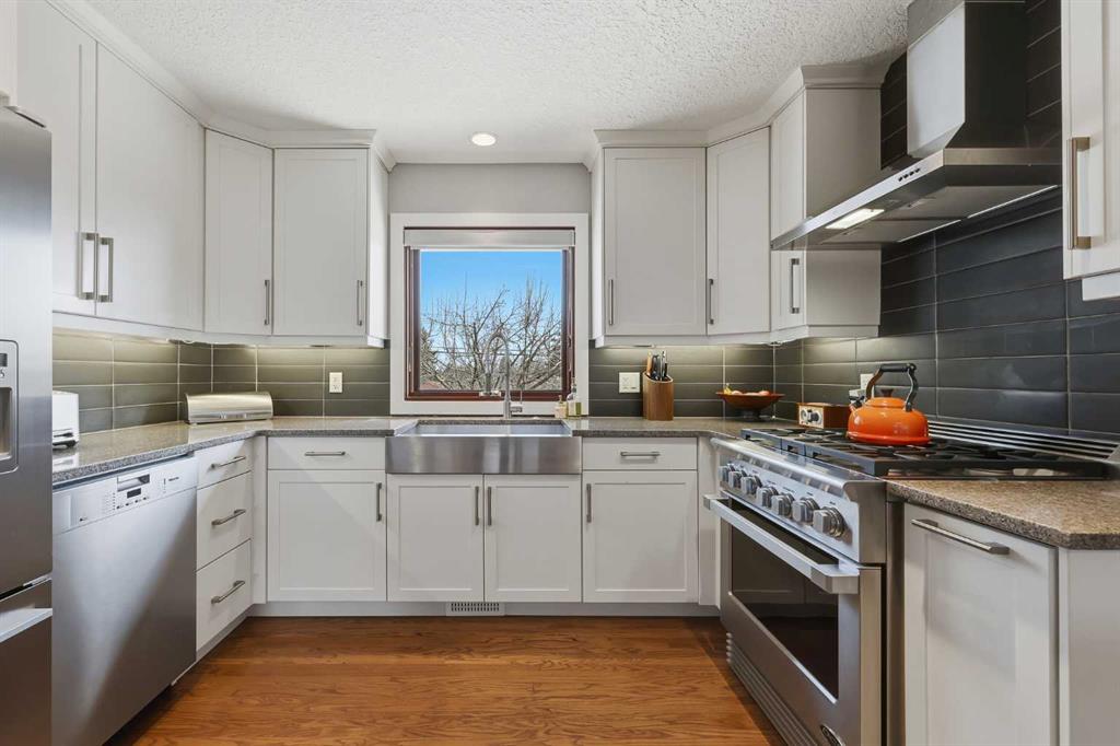 This classic bungalow has been meticulously updated, blending original character with a clean, modern aesthetic. The open-concept living area is anchored by stunning sculptured ceilings and a large west-facing bay window that fills the space with natural light. Every detail has been addressed to provide a cohesive, sophisticated feel. The redesigned main floor includes a primary suite with a dedicated full ensuite bath. The original hardwood floors have been professionally refinished, maintaining the home’s history while providing a fresh look. A second bedroom offers flexibility, and the modernized kitchen with quartz counters and an open layout serves as the central hub for the formal dining and living areas. The fully finished basement significantly expands the home’s footprint, featuring a large family room for entertainment. Two additional bedrooms and a full bathroom make this level ideal for guests or family members. A dedicated mudroom serves as a functional transition, connecting the lower level directly to the attached garage, where practicality meets lifestyle with the oversized double tandem garage. The new front porch provides a dedicated west-facing sitting area, while the nearly 6,000-square-foot lot offers a private, east-facing backyard retreat. Located on a quiet crescent just minutes from the downtown core and local park systems, this property is a premium opportunity in a stable community. Call today to view this masterfully renovated Wildwood home.