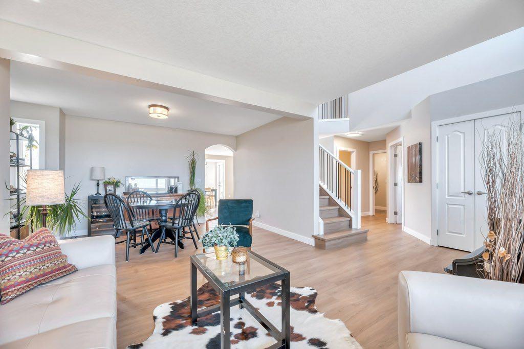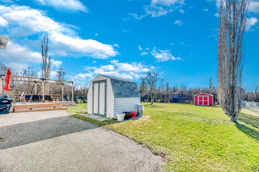 What if we told you that you can have it all?? The peace and tranquility of the country with city convenience just minutes away. A completely renovated home on a sprawling .46 acre lot with towering trees and lush landscaping. This incredible home on the East side of Chestermere offers all of that and more. This home feels bright, fresh and welcoming from the moment you step into the spacious front entryway with soaring vaulted ceiling. The elegant formal living and dining area is flooded with natural light from the large front window. The centre of this home is the open concept kitchen, living and dining rooms. You are going to fall in love with this kitchen. Popular white shaker style cabinetry is complemented by gleaming stainless steel appliances including a gas stove and built-in microwave, white Quartz counters and gorgeous tile backsplash. A centre island with seating is next to the dining area that is surrounded by windows to show off your gorgeous backyard. A door leading to the back deck allows convenient access for grilling and outdoor living. The dining area flows seamlessly into the family room where you’ll enjoy the comfort and ambience of a corner gas fireplace. This space lends itself well to both entertaining and everyday family life. A designated office space is conveniently located near the front door and French doors allow for privacy to work or study. A good sized mudroom off of the garage and a nice little 2 pc powder room round out this level. Upstairs you’ll find plenty of room for family or guests with a total of 4 bedrooms including the primary with 5 pc ensuite and walk in closet. The other bedrooms share the main bath. Gorgeous and durable luxury vinyl plank flooring and neutral finishes throughout. The basement is unspoiled for you to finish to suit your needs but you’ll be surprised at how bright and clean it feels. The floors are finished with a high gloss epoxy and the windows are large enough that you could add a couple of bedrooms if you choose. The laundry room is located down here but there are hook ups available behind the wall in the upstairs mudroom if you prefer. The idyllic backyard has tons of mature trees creating a private backyard oasis where you’ll love hosting get-togethers for family & friends all summer long. And a convenient irrigation system ensures efficient water to all. A great sized deck comes with a pergola and custom shade sails you can adjust to keep everyone cool and comfortable under the sun. The entire backyard is fully fenced making it safe for kids and pets to play freely. You’ll have all the room you need for vehicles, ATVs, RVs and more on both the oversized driveway as well as in the amazing quad tandem garage. A man door from the garage provides easy access to the backyard and the garden shed keeps the backyard tidy and organized. There is even a 30 amp power hook up for your RV. If you’re ready to transform your lifestyle don’t wait to take a tour.