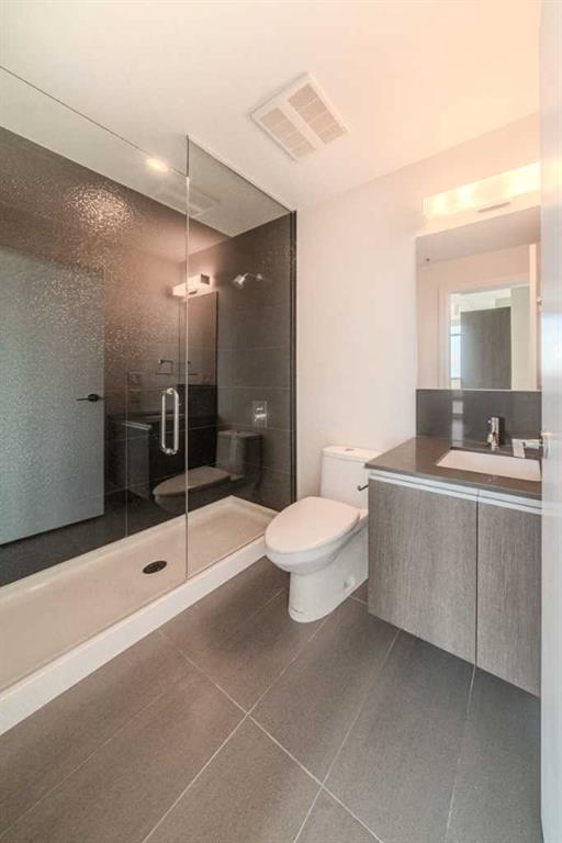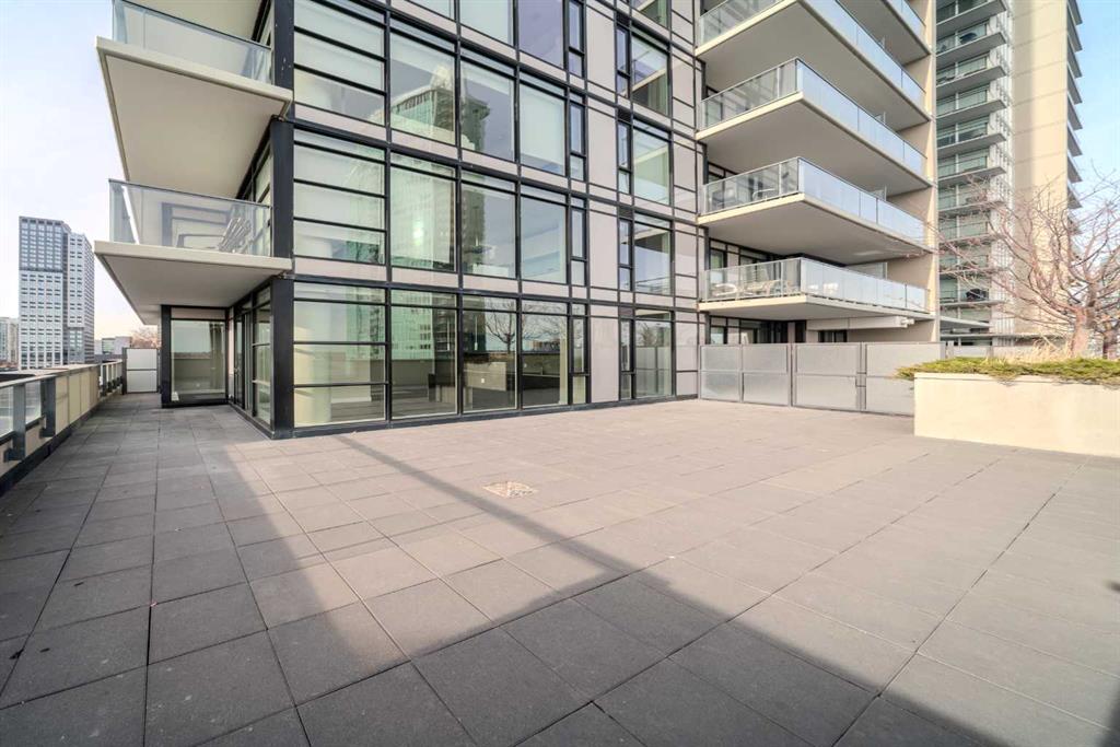 NEWLY RENOVATED, the home features modern high-end upgrades throughout, including brand-new flooring, premium kitchen cabinetry, contemporary tile backsplashes, quartz countertops, and sleek integrated appliances. The 9.5’ extra-tall ceilings exclusive to the terrace level create an airy sense of space, while the well-proportioned open-concept living area showcases two walls of floor-to-ceiling windows framing sunsets over the mountains, city skyline twinkles, and even front-row views of Stampede fireworks.