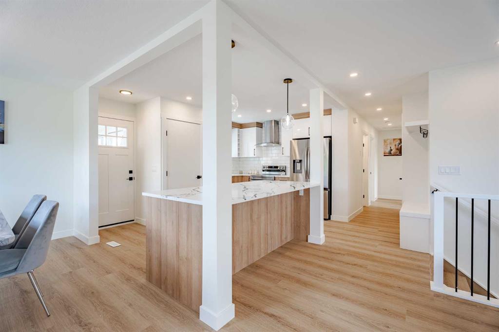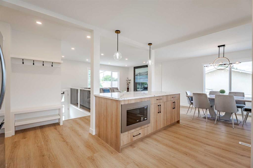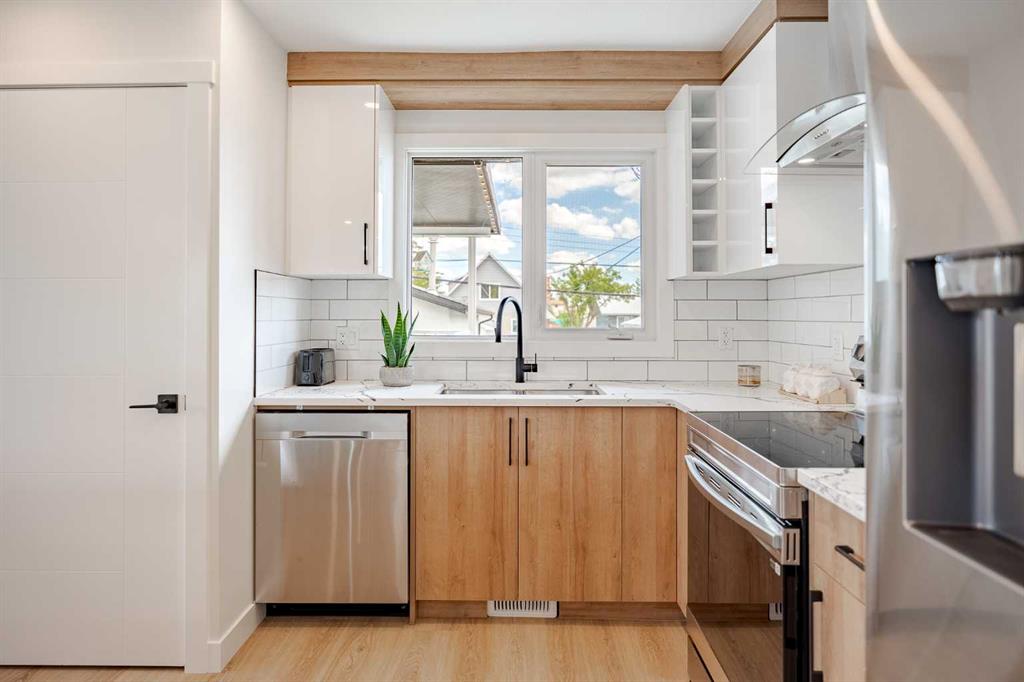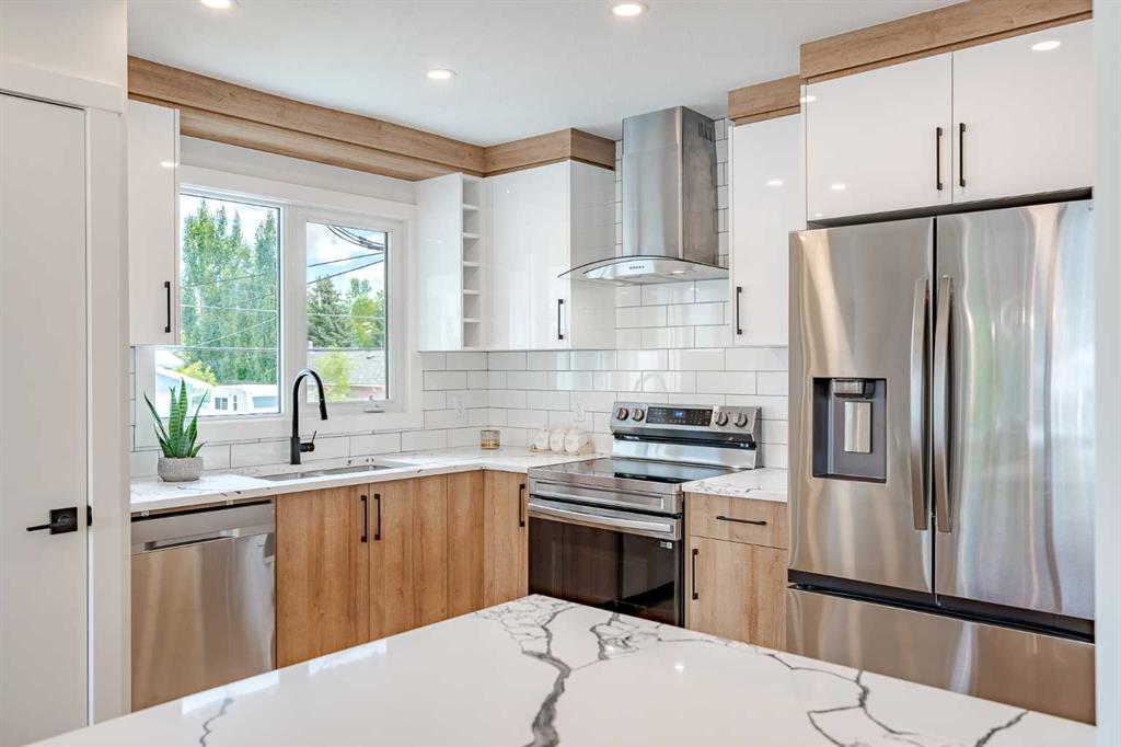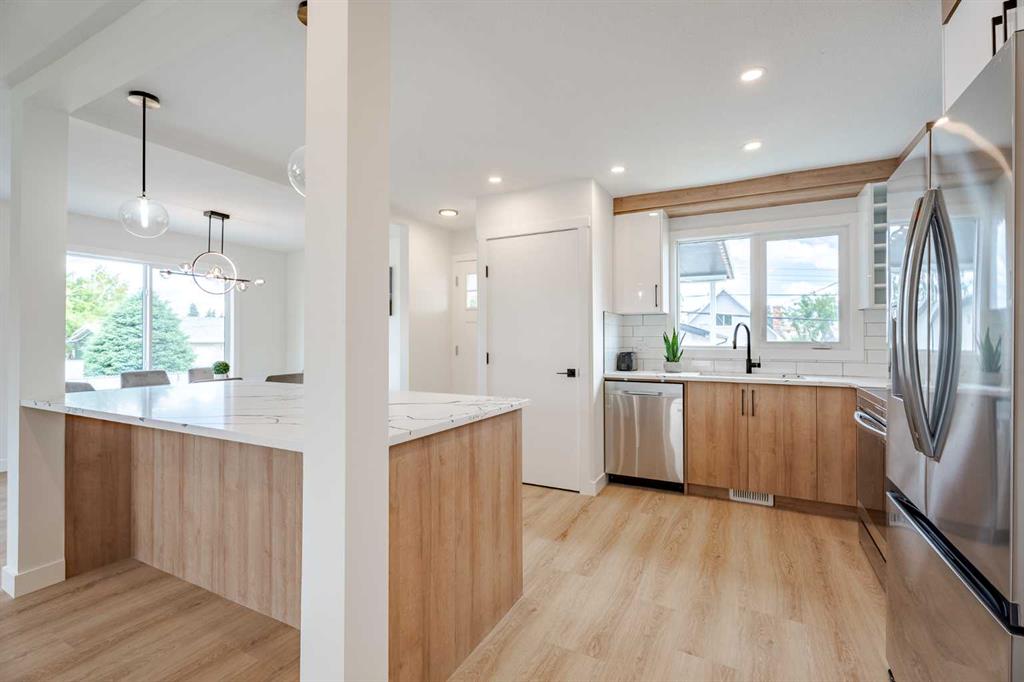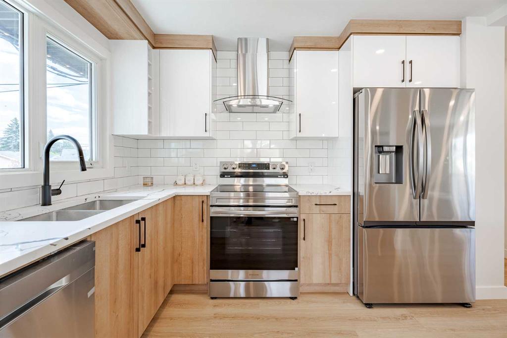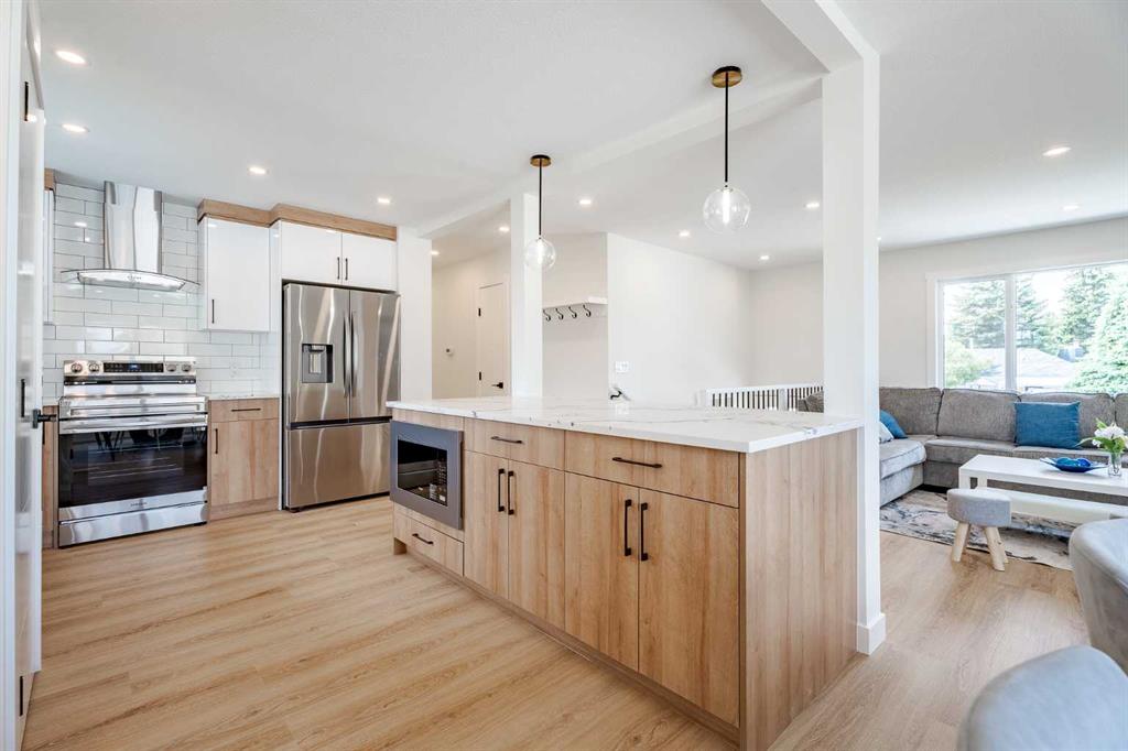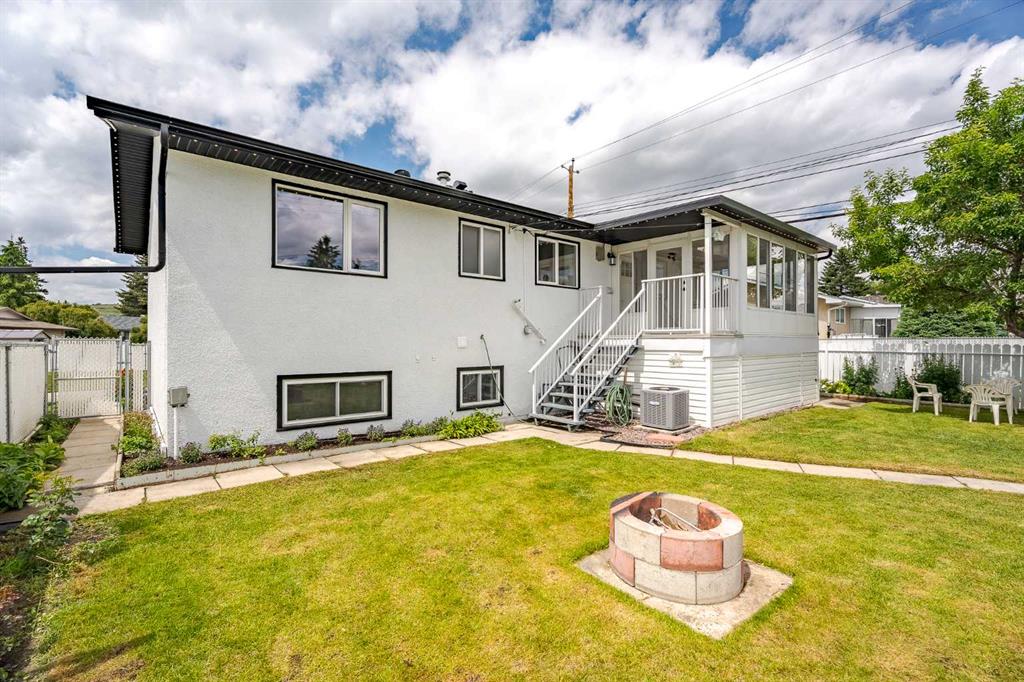 Fully renovated bi-level on a corner lot in the desirable community of Huntington Hills! Situated on a quiet street with back alley access and a front paved driveway, this home offers plenty of parking and excellent curb appeal. The main level features upgraded flooring, a modern tile-accented fireplace, a bright kitchen with island, 3 bedrooms, and 1.5 baths. A separate side entrance leads to an illegal basement suite with 3 bedrooms, full bath, kitchen, and laundry—ideal for rental income or extended family. Enjoy the fenced backyard with a sundeck, lounge area, firepit, and garden. The heated double detached garage includes epoxy flooring and an EV plug. A move-in-ready gem with versatility and style!
