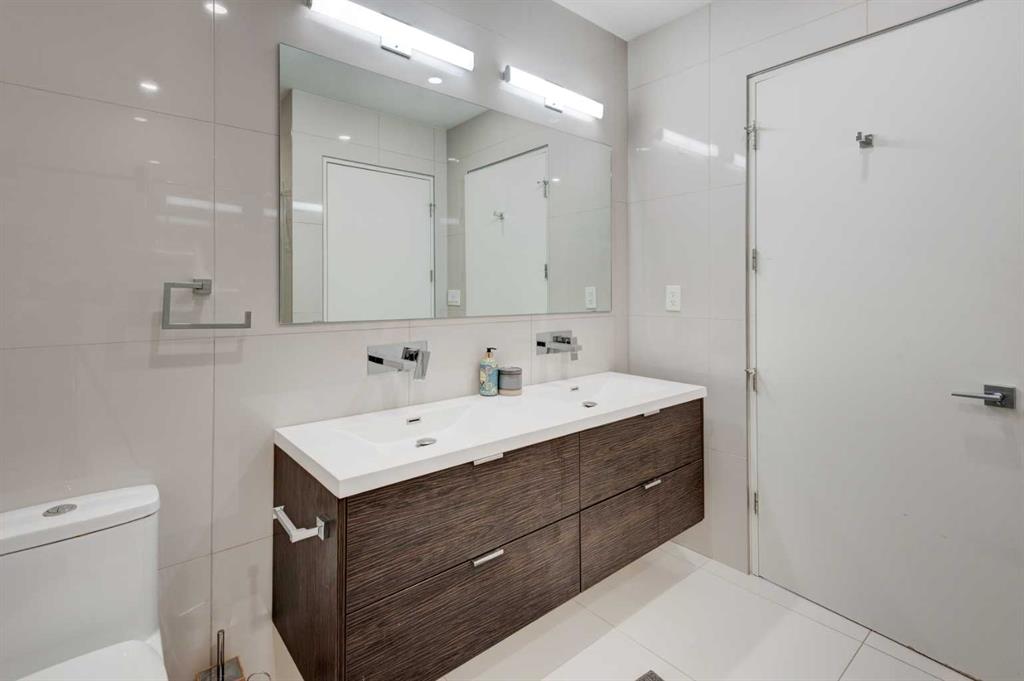 Welcome to unit 704 in The Avli in Inglewood a great unit in a pet friendly building. This TOP FLOOR unit with beautiful north views of the Calgary Zoo, Bow river and Bridgeland features 2 bedrooms – 2 bathrooms, titled underground parking and an additional storage locker. This is a great balance of modern style and functionality with sleek flooring, solid barn style sliding doors and modern lighting. The kitchen features a large quartz island with an extended wood eating counter, tons of cabinetry and European style integrated appliances. Primary bedroom has direct slider access to the large north facing balcony, built in wardrobes and a 4 piece ensuite with dual floating vanity and glass door shower. Second bedroom and bathroom are on the opposite side on the unit, perfect for guests. The flex space is ideal for a home office or additional storage. Building amenities include heated visitor parking, guest suite, car wash bay, bike locker and a large 3rd floor outdoor social space for larger gatherings. The Avli is a modern sleek stylish building in the heart of Inglewood that is well taken care of, very well managed and steps away from great restaurants, shopping, downtown, The Saddledome, Bow River and the Calgary Zoo.