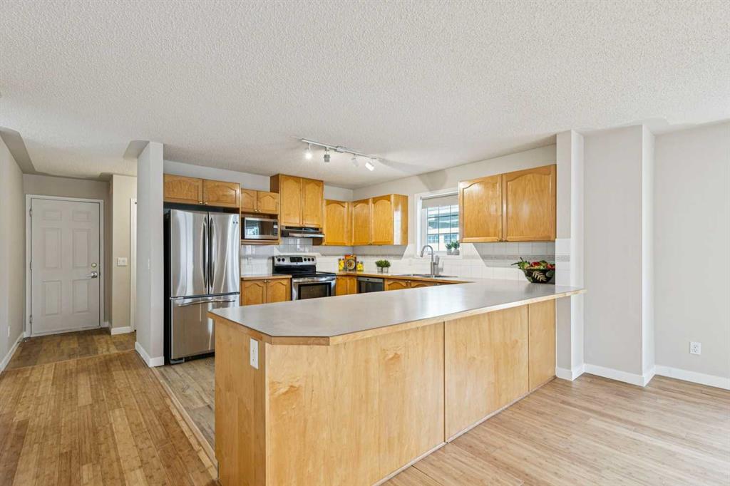 IMMACULATE, BEAUTIFUL, BRIGHT + OPEN, 1291 SQFT 2 BED 2 BATH BUNGALOW STYLE, GROUND FLOOR CONDO WITH ATTACHED GARAGE & MOST UTILITIES INCLUDED IN CONDO FEES!! Welcome to the well managed complex of Quinterra, with it’s beautiful landscaping, ample visitor parking, PET FRIENDLY policy (1 pet allowed with board approval) & incredible location in the sought after community of Coach Hill. The unit itself boasts a huge open concept floor-plan with bright, sunny, oversized windows, hardwood, vinyl plank, & carpet flooring with in-floor heating throughout. The kitchen features ample storage with its solid wood cabinets, pot & pan drawers, stainless steel appliances & a breakfast bar able to accommodate seating for 5. The dining area has room for a large dining table perfect for entertaining, while the living room has a beautiful gas fireplace & access to the lovely outdoor patio, where you can soak up the good weather. The unit has two bedrooms, & two bathrooms including a king sized south facing primary with walk-in closet & 3-piece en-suite. Parking is made easy by the attached single car garage. Walking distance to parks, playgrounds, schools, shopping, walking trails, only half an hour to the mountains & minutes to Signal Hill Shopping Centre, Sarcee Trail, Bow Trail, & the New Ring Road system!!