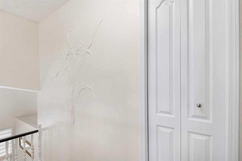 Upstairs, you’ll find three generously sized bedrooms, including a spacious primary retreat featuring a recently renovated ensuite and a custom walk-in closet by California Closets. The second level has been updated with modern vinyl plank flooring, adding a sleek and contemporary touch.