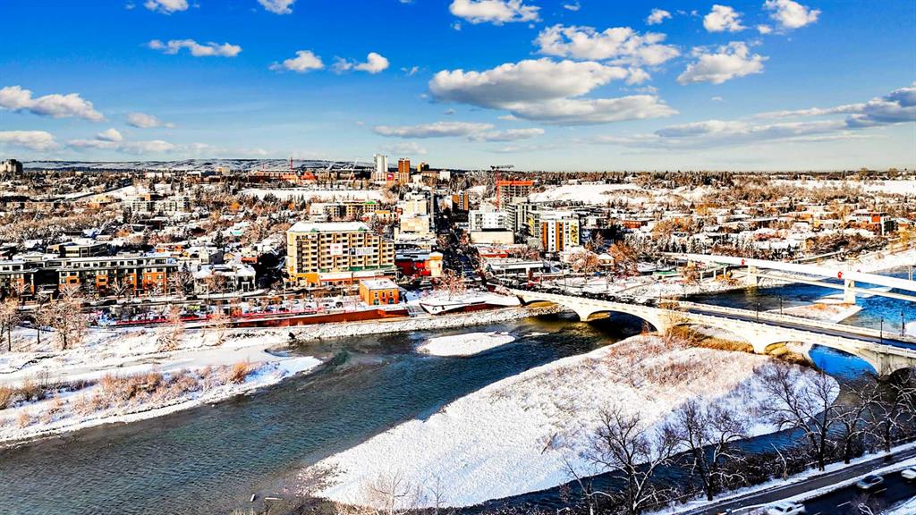 This stunning, move-in-ready condo features a highly sought-after floor plan with two bedrooms and two full bathrooms thoughtfully positioned on opposite sides of the unit for maximum privacy—a rare and desirable layout. With its sunny southwest exposure, the home is filled with natural light throughout the day, creating a warm and welcoming atmosphere. The spacious balcony offers beautiful views of the Bow River, perfect for relaxing and entertaining. Just steps from Kensington’s renowned restaurants, shops, and services, this immaculate one-owner residence has been meticulously cared for and extensively upgraded. The gourmet kitchen has been stylishly refaced and includes a brand-new induction stove along with custom built-in storage that enhances both design and functionality. Elegant hardwood flooring spans the living and dining areas, while the bedrooms feature brand-new luxury vinyl plank. The entire unit has been freshly painted in a crisp, bright, neutral tone. Additional modern conveniences include new kitchen and vanity faucets, as well as a full-size Electrolux washer and dryer located in the in-suite laundry area. Throughout the home, ample custom-built cabinetry provides exceptional storage and organization. Residents of this exceptional building enjoy access to an indoor swimming pool, a relaxing hot tub, and a fully equipped gym. Convenience and security are top priorities, with secure heated underground parking, concierge service, after-hours security, and visitor parking. This unit includes one assigned underground parking stall and storage unit. Situated mere steps from the Bow River pathway and Calgary’s vibrant downtown core, this location offers unparalleled access to shopping, dining, outdoor recreation, and public transit via the nearby C-Train station in the free fare zone. Experience sophisticated inner-city living in a building celebrated for its quality construction, unique architecture, and outstanding amenities.