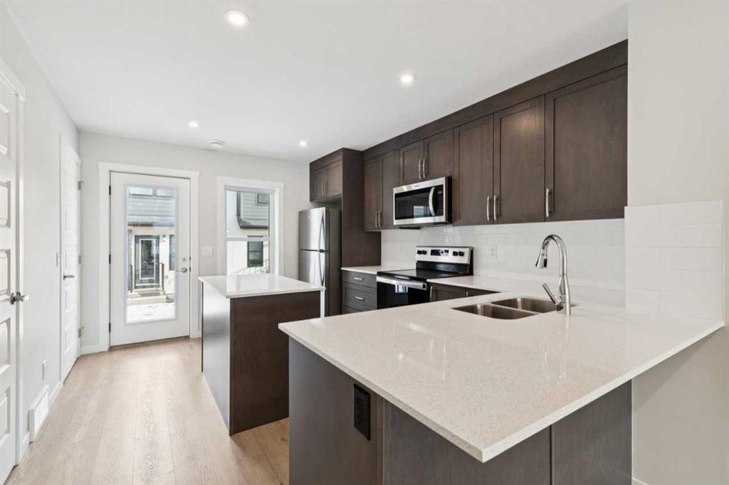 Modern Comfort in Calgary’s Premier Lake Community – Welcome to this stylish two-storey townhome in the heart of Calgary’s sought-after lake community. Thoughtfully designed for both everyday living and entertaining, the open-concept main floor seamlessly connects the kitchen, dining, and living areas. The modern kitchen has stainless steel appliances, an island with quartz countertops, and plenty of storage. Upstairs, you’ll find two spacious bedrooms, each with its own ensuite and generous closet space, offering both privacy and convenience. A dedicated upper-floor laundry area adds to the home’s everyday functionality. Built to exceed today’s standards, this ZEN home offers 40% more insulation than required by code, resulting in a quieter, warmer, and more energy-efficient living experience. Triple-pane, double-coated windows, a high-efficiency HRV (Fresh Air System), and extra airtight construction improve indoor air quality, durability, and resiliency.