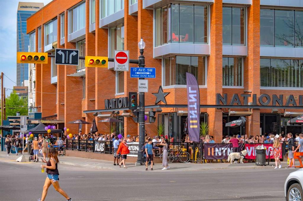 Welcome to Unit 706 at Centro733 – a beautifully updated and spacious executive one-bedroom condo that combines modern finishes with exceptional value in one of Calgary’s most vibrant neighbourhoods. Perched on the 7th floor, this home offers beautiful views over surrounding buildings through stunning floor-to-ceiling windows, filling the space with natural light and opening onto a generous private balcony—perfect for morning coffee or evening wind-downs. The kitchen is sleek and functional, featuring granite countertops, stainless steel appliances, custom cabinetry, all flowing seamlessly into the open dining area. The spacious bedroom easily fits a king-sized bed and has modern touches throughout. You’ll also enjoy the convenience of an in-unit washer/dryer combo. Centro733 is a concrete-built, secure building offering a well-equipped gym, an owner’s lounge, bicycle storage, and your own secure storage locker and assigned parking stall. Located just minutes from the shops and restaurants of 17th Avenue and within easy reach of downtown by foot or bike, this location is hard to beat. This is your opportunity to own a stylish, lock-and-leave lifestyle in the heart of Calgary.