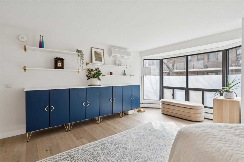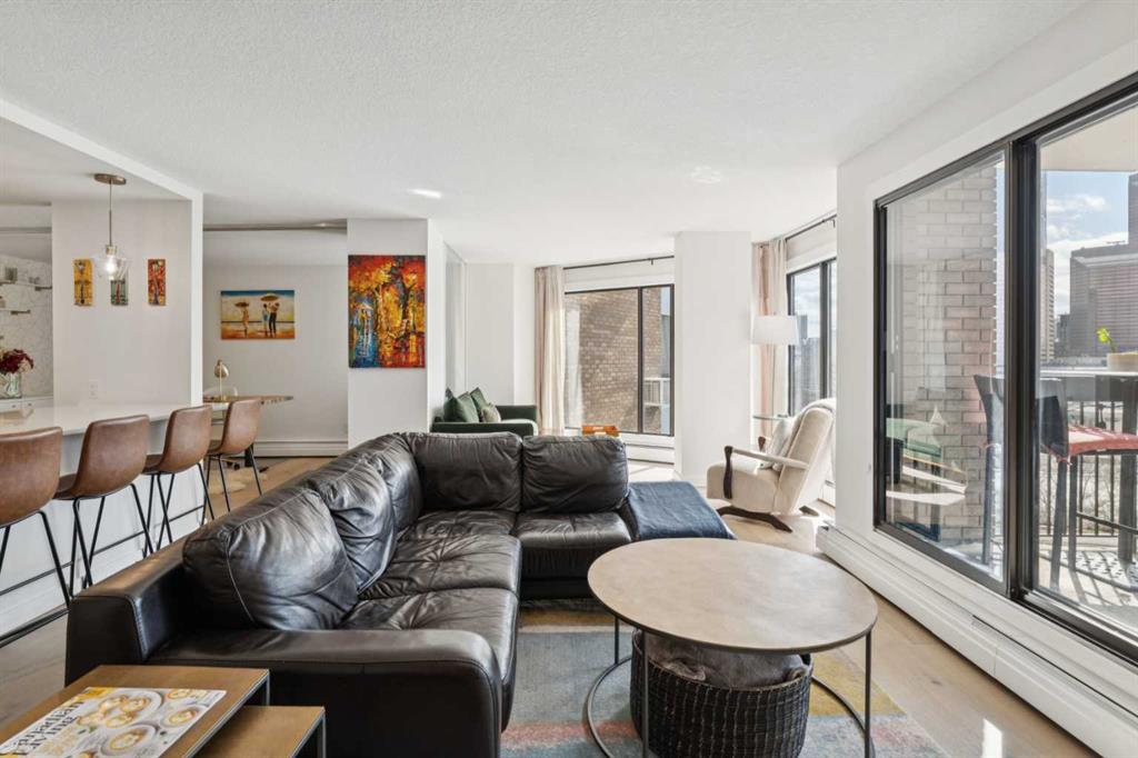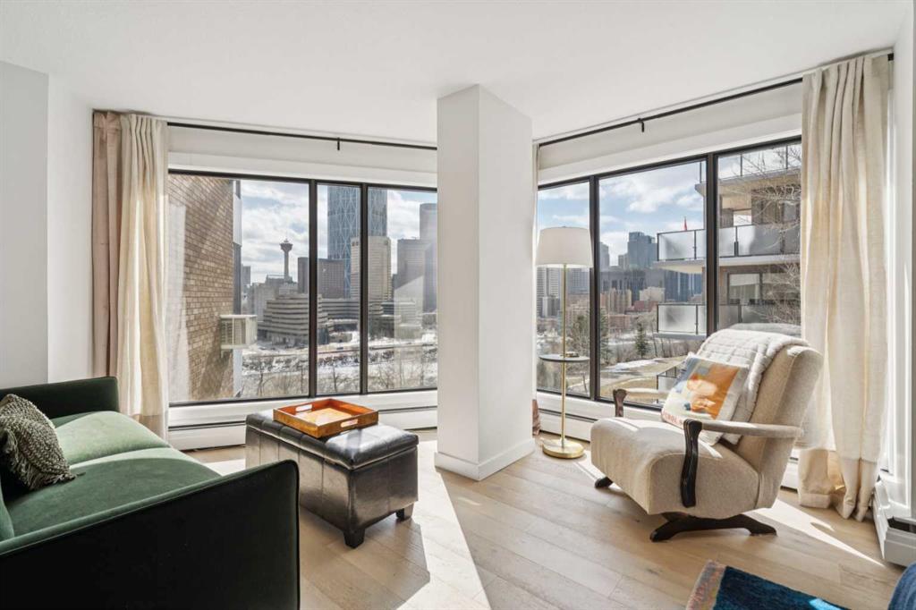 On the ridge in Crescent Heights, overlooking downtown. The most desirable real estate in the city. You can’t beat these views. This is a rare opportunity. There are very few apartments on this ridge. Without question, the most reasonably priced option to get this view. This wonderful 1494 ft² apartment was recently completely renovated. Luxury finishes that will not disappoint. Engineered hardwood floors, high end appliances, tile, stone, gas fireplace. The layout has been re-organized, opened up and modernized. Huge kitchen, massive island, breakfast bar. The primary bedroom is expansive. A walk-in closet and ensuite often never found in properties at 3x the price. There is a flex-room, just off the main living space, currently being utilized as an office. Open it up or close it off with the sliding dividers and use it as you see fit. Office, work out space, dining room or whatever you imagine. The lifestyle choices here are amazing. Walk to downtown, bow river pathway system, all the restaurants and bars on Centre St, Edmonton Tr and in Bridgeland. The building has a tidy, well equipped gym. Also, there’s a huge community party/games room with a kitchen, making hosting larger events with family and friends easy. They’ll love to visit, there’s lots of street parking. A quiet, well run building, on a quiet street so close to downtown, unheard of.