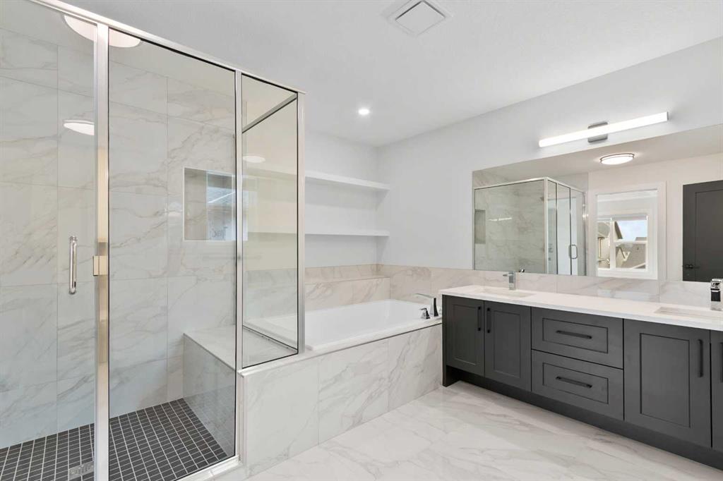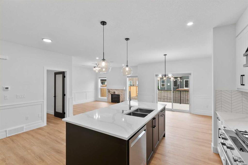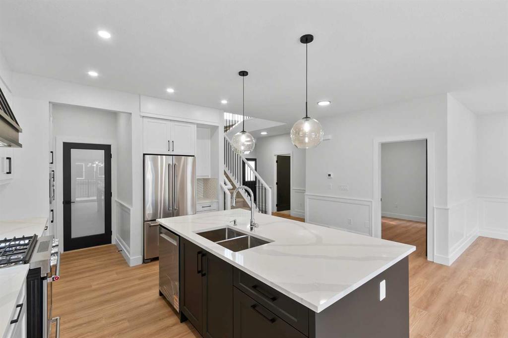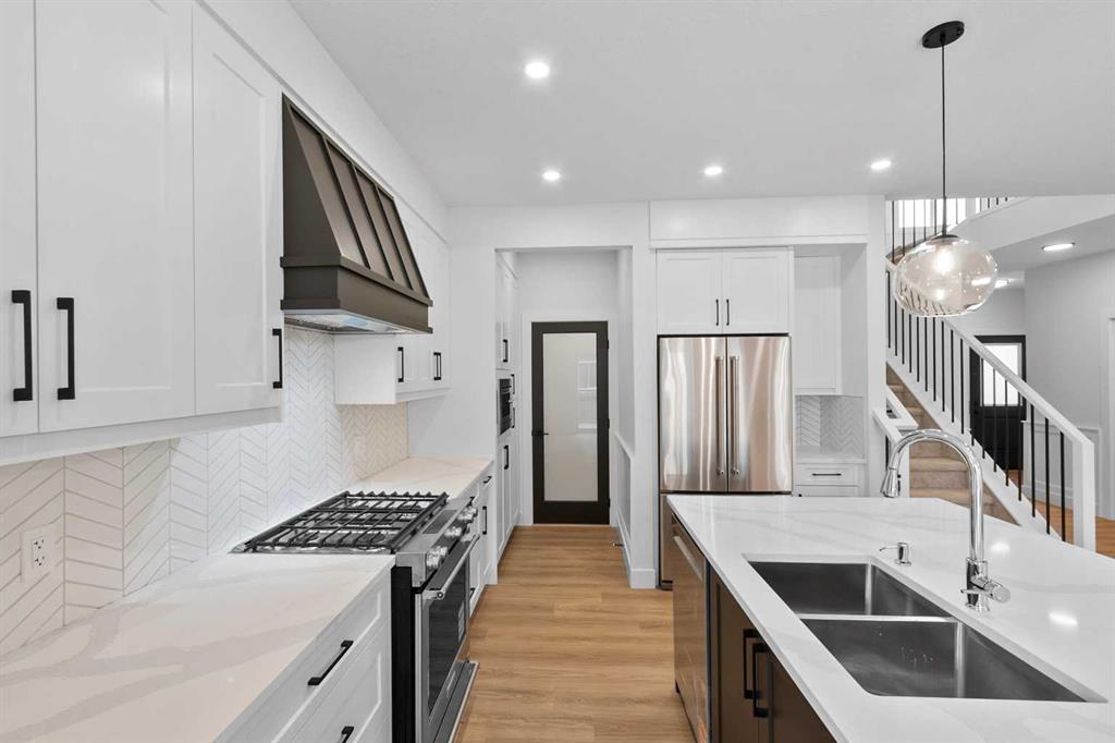 Welcome to this stunning detached home in Mandalay Estates, Carstairs, which offers an ideal location near downtown amenities and recreational spots such as the Carstairs Community Golf Course, Memorial Arena, and Campground. It’s also conveniently close to Hugh Sutherland School with a grocery store (Loblaws) located right within the subdivision. Expertly crafted by Marygold Homes, this meticulously designed residence features over 2,400 sq.ft. of thoughtfully planned living space, including 3 spacious bedrooms and 2.5 bathrooms—perfect for families seeking comfort and functionality. Walk into luxury with custom wainscoting, luxury vinyl plank flooring, plush carpet, and expansive windows that fill the home with natural light. The exterior boasts durable hardie-board siding and a triple-car attached garage—both aesthetically pleasing as much as it is practical. From the garage, a well-equipped mudroom with custom-built storage leads directly into the home. The kitchen is a chef’s dream, showcasing a large central island with bar seating and dual-side storage, stainless steel appliances, full-height shaker cabinetry, quartz countertops, and soft-close hardware throughout. Adjacent to the kitchen, the elegant dining area opens through large patio doors to a spacious, treated-wood deck and backyard—ideal for entertaining. The inviting living room features a custom mantle and tile-surround gas fireplace, creating a cozy space for family gatherings. A dedicated home office offers a quiet and productive workspace. The upper level, with its thoughtfully separated layout enhances privacy with the master-suite spaced away from the secondary bedrooms. The luxurious primary headquarters includes oversized windows, a raised box-tray ceiling, as well as a walk-in closet with built-in shelving. The 5-piece ensuite features a glass-enclosed shower with a bench and niche, a large soaker tub, a dual-sink vanity, and a private water closet. The laundry room is also conveniently located on the upper level and comes complete with custom cabinetry. A built-in display and entertainment center, a separate built-in desk, a full 4-pc bathroom, a generous bonus room perfect for family time, as well as two sizable additional bedrooms, each with their own built-in closets, complete the upper floor. The unfinished basement includes rough-ins for a future bathroom as well as 9-ft. ceilings—offering flexibility for further customization to suit a growing family’s needs. **[GST rebate, if any, shall go to the seller.]**