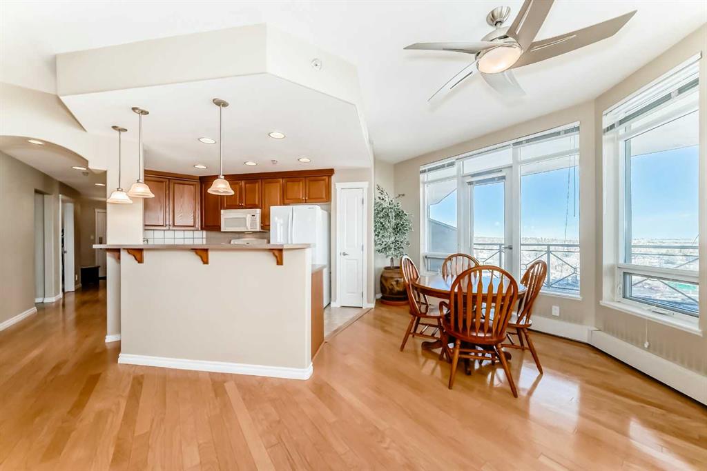 *** OPEN HOUSE SUNDAY DEC 21ST 2-4 PM *** the RENAISSANCE…CALGARY’S PREMIER RESIDENCE! Two bedroom plus den SKYHOME located in the WEST TOWER. PANORAMIC VIEW of the CITY SKYLINE from the wall of windows. Gleaming hardwood floors, gas fireplace in living room, huge 24’X13′ covered balcony also overlooks the city, TITLED heated indoor parking stall. Courteous 24/7 concierge, guest suite, residents theater, library, craft/hobby room, social room with fully equipped kitchen, gym/exercise room, car wash bay and direct access to mall. Indoor VISITOR parking. LRT station is just across the street. WHAT A BEAUTIFUL WAY TO LIVE!