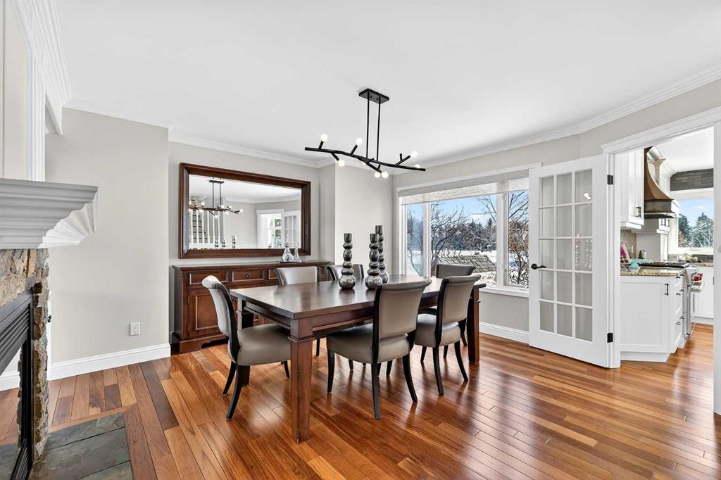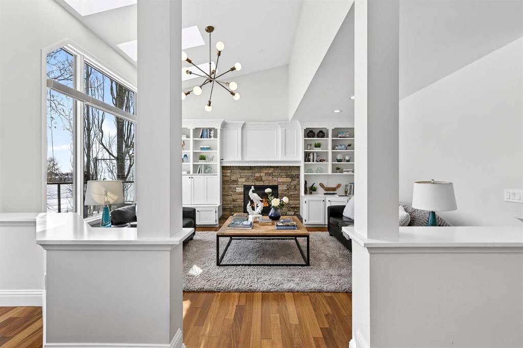 Step inside to a stunning vaulted living room featuring a striking two-sided fireplace, rich hardwood flooring, and an abundance of natural light. The main floor also includes a spacious private office with custom built-ins, as well as a formal dining room—perfect for entertaining.