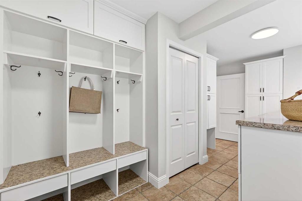 A convenient mudroom with laundry, a stylish powder room, and access to the oversized double attached garage complete the main level.