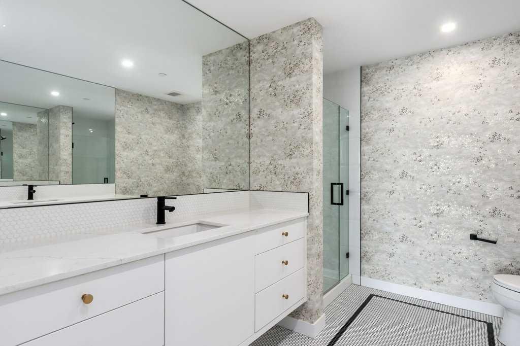 Inside, the layout is exceptionally functional boasting two spacious bedrooms, each with its own private 4-piece ensuite—perfect for guests, roommates, or a refined primary suite plus dedicated office. A separate powder room offers added convenience rarely found in condos of this size. Luxury vinyl plank flooring graces the main living areas offering durability and style and unique mosaic tile flooring in the bathrooms, adding texture and a designer touch.