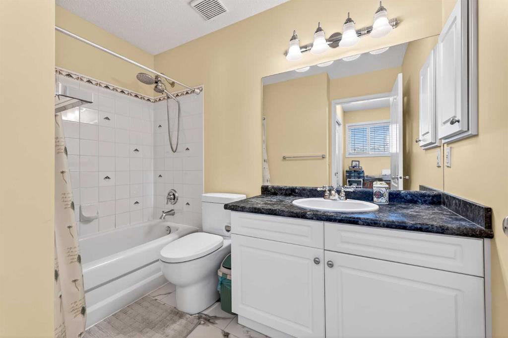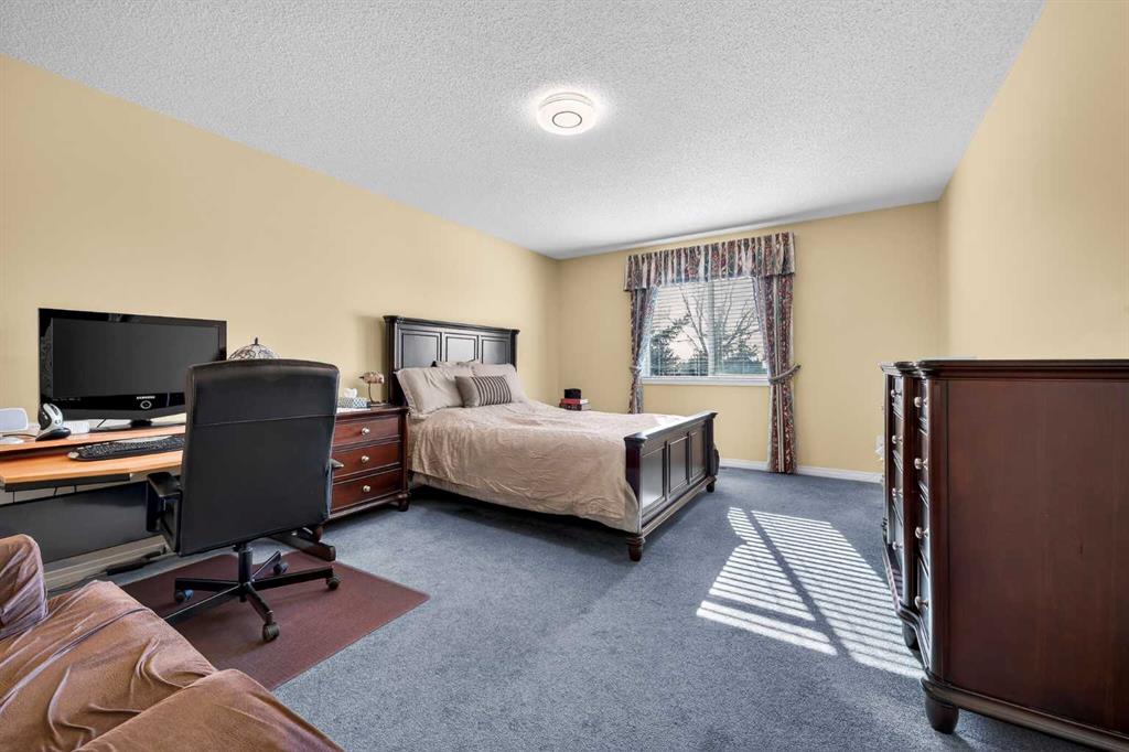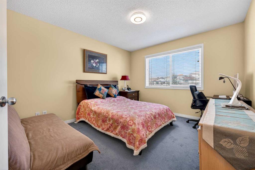 Additional features include a double-attached garage, double driveway, ample visitor parking, and recent updates such as newer shingles and fresh interior paint. The location offers unmatched convenience with nearby shopping, restaurants, a movie theatre, schools, walking paths, and quick access to Deerfoot Trail, Stoney Trail, Shaganappi Trail, and 14th Street, as well as Calgary International Airport.