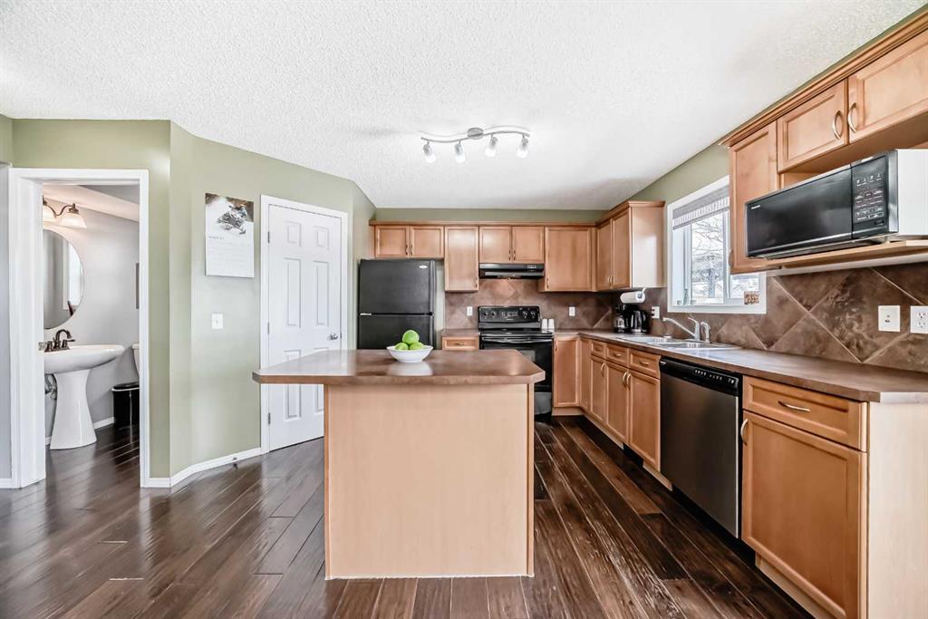 The main floor features engineered hardwood flooring and a thoughtfully designed kitchen complete with a corner pantry, full tile backsplash, central island, and adjoining dining area—perfect for everyday living and entertaining alike.