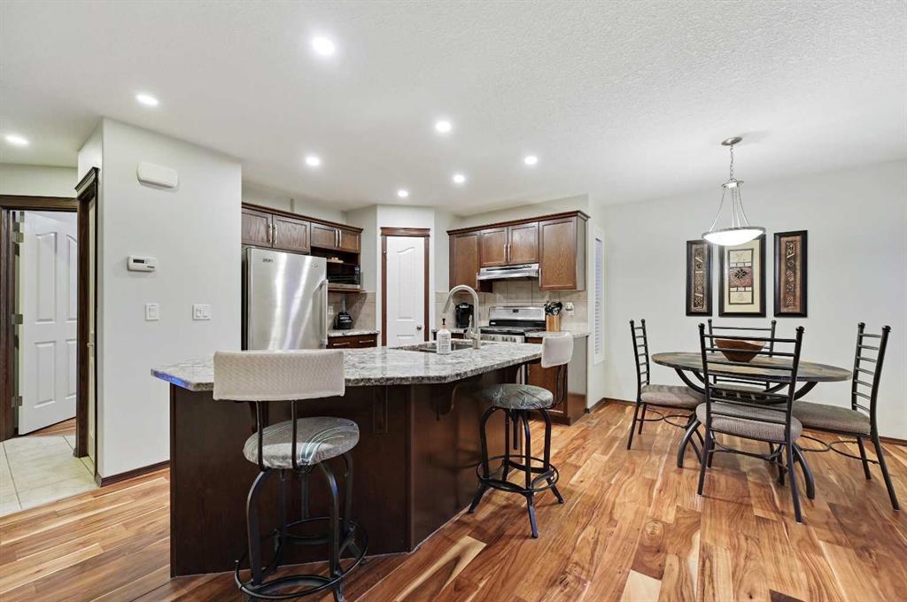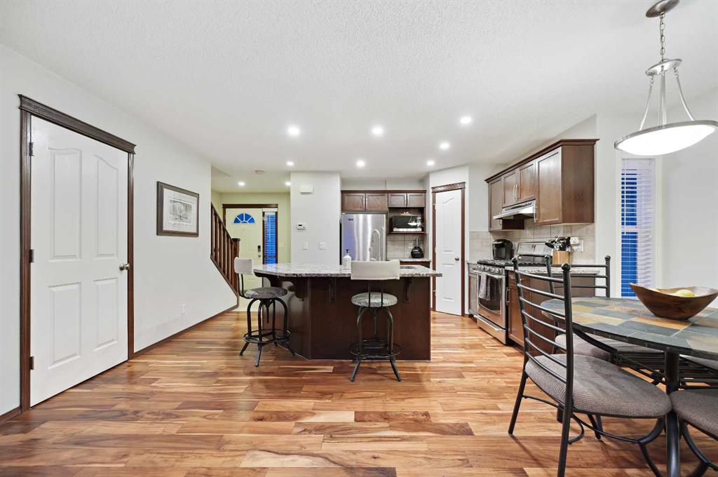 OPEN HOUSE SATURDAY NOV 29TH @ 10AM TO 12PM – What an opportunity with this elegantly finished Morrison-built home located on a quiet street just a short walk to shopping and schools in the heart of highly sought after Cranston! Its clean and well-kept with upgrades including hardwood, solid oak cabinetry, knock-down ceilings, granite up and down, upgraded railing, over-sized garage with gas hook up, and AC. The spacious kitchen is equipped with high-end stainless appliances, hosts a large island with breakfast bar and has a full pantry and plenty of storage. The open concept design makes for great family gatherings and entertaining. Work from home easily in the main floor office or use this space as a 4th bedroom. Upstairs you’ll be delighted to find a generously sized Primary bedroom with a large walk-in closet and 3-piece ensuite bath. Two additional bedrooms and a full shared bath complete this upper floor. The basement is ready for future development with 3 large windows and rough-in for a bath all ideally situated. The mechanicals, laundry and large storage area conveniently tucked away. Enjoy the outdoor living on the oversized deck and south facing yard. The community of Cranston offers walking/biking paths, with mountain views, plenty of green space parks, shopping, and schools; all with easy access to major transportation routes. This home is great value and move-in ready!