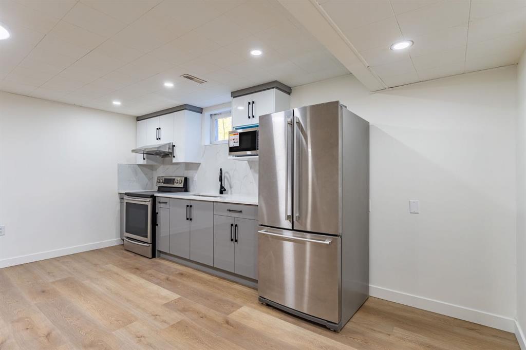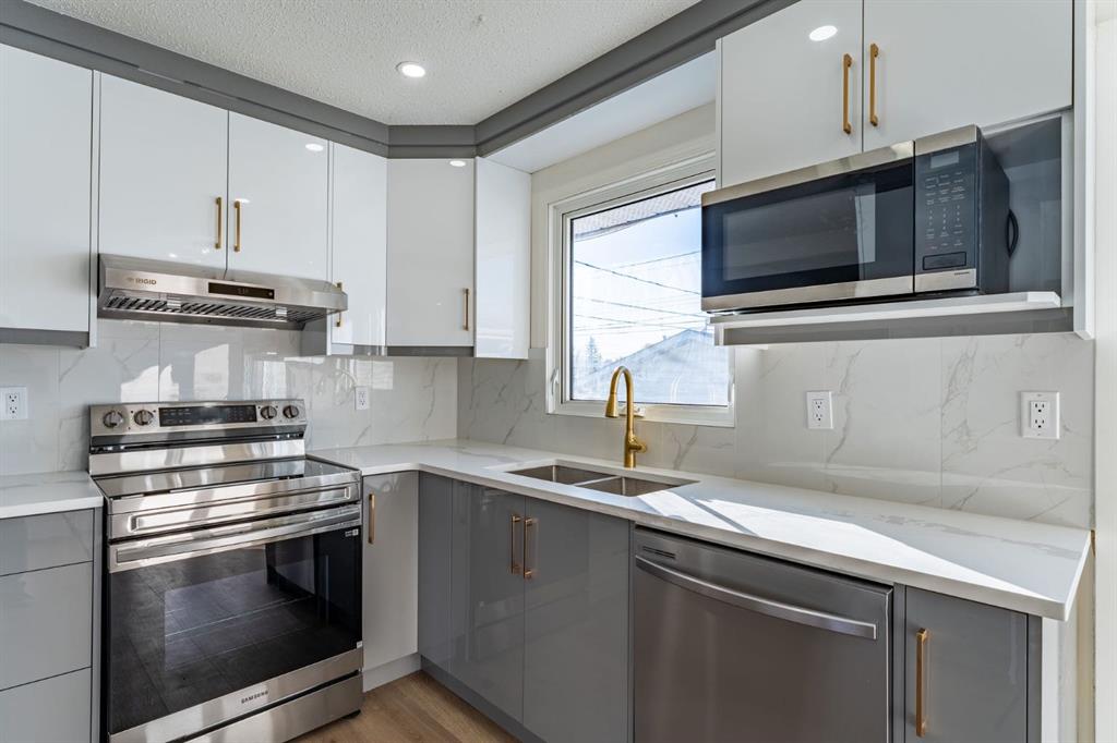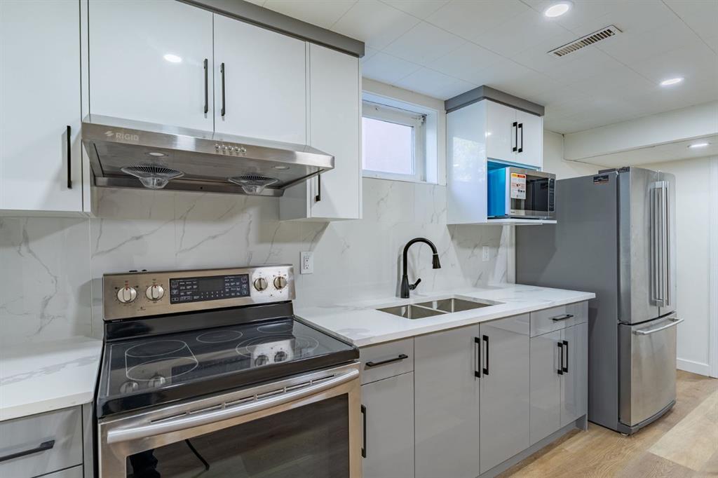 FULLY RENOVATED IN MARLBOROUGH! NEW ROOF! NEW GUTTERS! NEW SOD! Welcome to this beautifully updated bungalow offering MODERN FINISHES, functional space, and abundant natural light! Take a look at the fresh landscaping, NEW SOD, and a welcoming front entry with a brand-new door. Step inside and the main living area is warm and inviting, highlighted by a stunning feature wall with marble and wood paneling accented by custom lighting. The bright home is full of sunshine up and down! The new sliding door provides easy access to the sunny back deck and backyard. The kitchen is a true showpiece with quartz countertops, high-gloss two-tone cabinetry, NEW stainless steel appliances, and striking gold hardware and accents. There are 3 spacious bedrooms on the main level, including the primary which offers access to the main bathroom through a convenient connecting door. The bathroom is stylishly finished with tile for a modern touch. The FULLY FINISHED illegal basement suite expands the living space with 2 additional bedrooms featuring NEW EGRESS WINDOWS, a large recreation area, 2 tone kitchen cabinets with a quartz countertop, and a beautifully finished bathroom with black hardware and fixtures. A separate entrance provides added flexibility, making the space ideal for extended family living or future rental potential (subject to city bylaws and regulations). The home is also equipped with an electric water heater and a humidifier, adding comfort and efficiency year-round. Step outside to enjoy the sunny, south-facing backyard and deck, perfect for gatherings and everyday relaxation. The property also includes a double garage PLUS a new parking pad, offering plenty of parking and storage. Walking distance to MARLBOROUGH STATION, Marlborough Mall, and Pacific Place. Mall Located within walking distance to schools, parks, and just minutes away from Memorial Drive and 16 Avenue, this home combines style, function, and convenience in one incredible package. Don’t miss the chance to own this beautifully upgraded bungalow in a fantastic location for an amazing price!