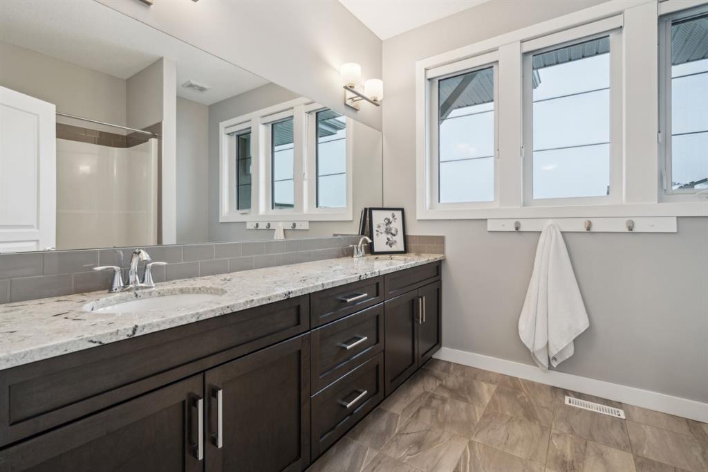 Welcome to your GORGEOUS family home located in the very sought after community of Harmony where life and play are aligned! Featuring the best layout for a growing family, a huge lot backing onto GREEN SPACE, walking path- with a well-appointed 5 bedrooms, office, BONUS ROOM and MASSIVE YARD! From the moment you enter you notice the gleaming custom hardwood floors with spacious, grand foyer. Off the front is a very expansive office for a functional work space. The well designed, open- concept main floor has full windows on the back of the house and a SOUTH BACK yard exposure – giving you natural light all day! The living room has a gas fireplace with custom surround and opens to the dining area and back door. From there you can head outside to your DREAM YARD and never ending outdoor space that is every homeowner’s fantasy! Including an expansive outdoor entertaining area and colossal sprawling yard which can house a hockey rink or playtime for your whole family! This incredible back green space also opens up to continued panoramic green space that this street is known for and west unobstructed views of the Rocky Mountains which is why this street is so sought-after and one of the best places to live here. Back inside you have a huge CHEFS KITCHEN with granite countertops, shaker style cabinetry, a large island, stainless-steel appliances including a wall oven and tons of storage. The pass-through pantry makes grocery drop off easy from the garage and good mudroom with lockers for all of your family’s busy days! A 2 pc powder room completes the level. Upstairs, the thoughtful design continues with an oversized stunning primary suite – a tranquil space to relax with big windows and tons of natural light. Your spa-like en-suite has a standalone soaker tub, generous shower and dual vanity and a walk-in closet with built ins. 2 more large bedrooms on this level that have a 4pc bath in between them to share. You will also be able to enjoy movie nights or lazy days in your perfect bonus room and upper laundry. Downstairs, your basement is fully finished with 2 bedrooms and 3 pc bath and rec space for ping-pong nights or a future bar area if you so chose! Additionally, is has a living room area and gym space set up for your at home workouts. This home has a FRONT ATTACHED, double-oversized garage with tons of storage, epoxy flooring and an extended driveway. Close to Edge school and all of the amenities that Harmony has to offer for all stages of life—beaches, lake and beach club, playgrounds, Mickelson National Golf Club, LaunchPad, the Adventure Park, trails, and more. Just west outside of Calgary 5 mins, and the city-center a short 25 min commute to downtown. This is easily the best kept (well almost) secret making it easy to escape to Canmore or the mountains and offering the charm and comfort of small-town living without sacrificing urban accessibility. To be a part of Harmony is to be part of something more than just a neighborhood; a it’s a feeling of belonging.
