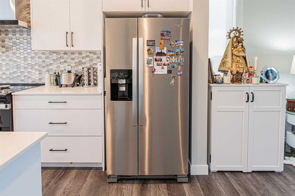 This level features a sunlit living room, a modern kitchen equipped with stainless steel appliances, a spacious kitchen island, quartz countertops, and a balcony – ideal for enjoying summer evenings. A cozy dining area provides the perfect spot for family meals, and a 2-piece bathroom adds convenience.
