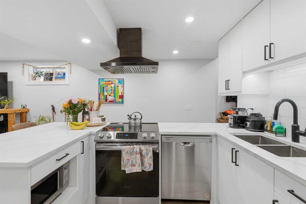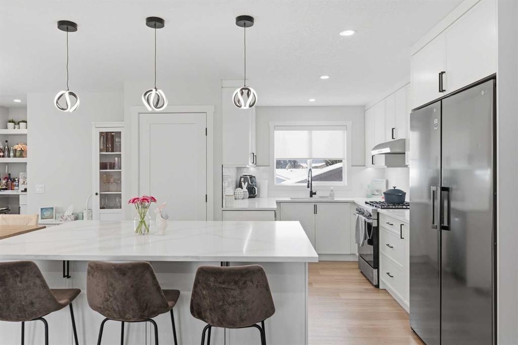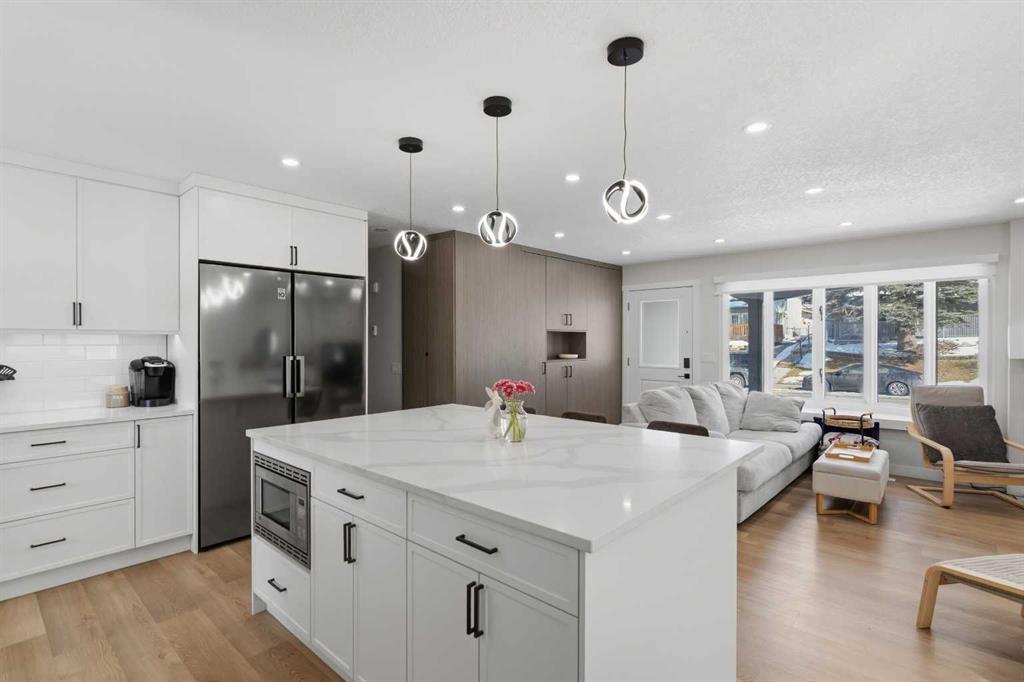 Perfectly positioned in sought-after Silver Springs, this extensively renovated home introduces a flexible 6-bedroom layout with a beautifully finished illegal suite, ideal for multi-generational living or added versatility. Step inside to experience a bright, open-concept main level where luxury vinyl plank flooring and LED lighting establish a clean, modern aesthetic while maintaining everyday durability. Built-in storage at the front entry keeps daily routines organized while creating an immediate sense of intention and design. Gather around the gas fireplace in the living room as expansive windows draw in natural light throughout the day, enhancing both comfort and atmosphere. Entertain with ease as clear sightlines connect the dining area, where designer lighting elevates both casual meals and special occasions. Stay productive at the integrated workstation that adapts seamlessly to work or study needs without sacrificing living space. Effortlessly prepare meals in the thoughtfully designed kitchen showcasing quartz countertops, full-height cabinetry, high-end appliances including a gas stove, and a large island that anchors conversation and connection. Retreat at the end of the day to a private primary bedroom featuring its own stylish 2-piece ensuite, while two additional bedrooms and a well-appointed 4-piece bathroom complete the main level. Head downstairs through a separate entrance to discover a fully self-contained lower level equipped with its own laundry, ensuring privacy and independence. Enjoy a modern open layout that mirrors the quality and finish of the upper level, complemented by a spacious living area and a full kitchen finished with quartz surfaces, stainless steel appliances and a central island. Rest comfortably in three additional bedrooms with egress windows that enhance both safety and natural light, including a primary space with its own 2-piece ensuite, while a 4-piece bathroom serves the remainder of the level. Benefit from major upgrades completed in 2024 including a furnace, hot water tank, roof shingles, and windows, delivering peace of mind for years ahead. Spend time outdoors in the expansive backyard where mature trees create a private setting, a paver stone patio encourages outdoor dining and relaxation and generous lawn space supports play or gardening. Appreciate the quiet location just steps from pathways leading to the Bow River, where nature, recreation and scenic views become part of daily life. It is a short drive to nearby Winsport, Silver Springs golf and country club, U of C, Market Mall and the Foothills Hospital. Don’t miss out on the opportunity.