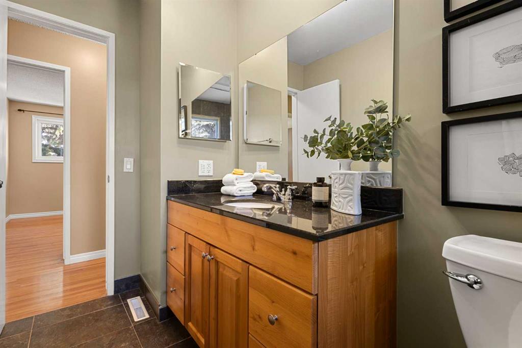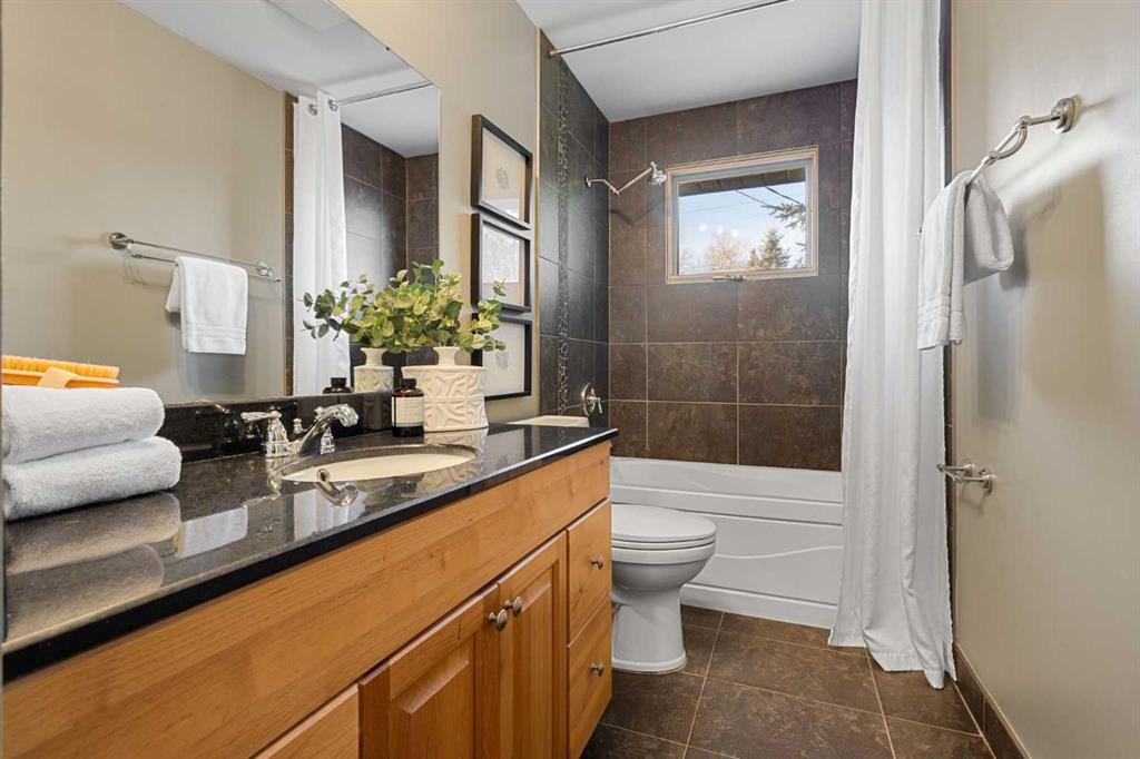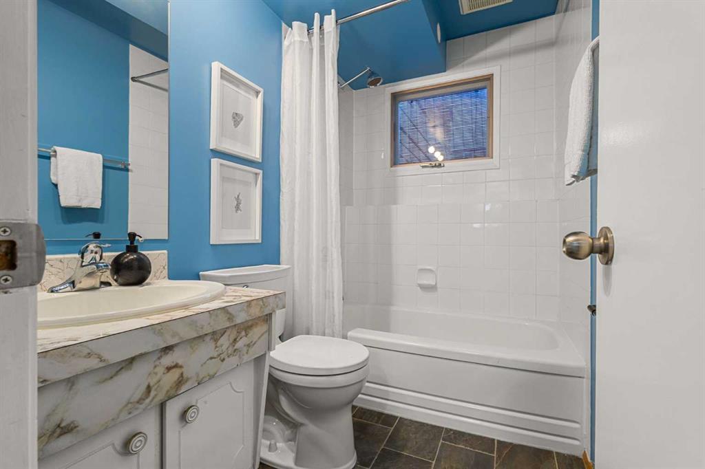 The spacious main-floor bathroom includes a window for plenty of natural light, and three bedrooms complete this level.